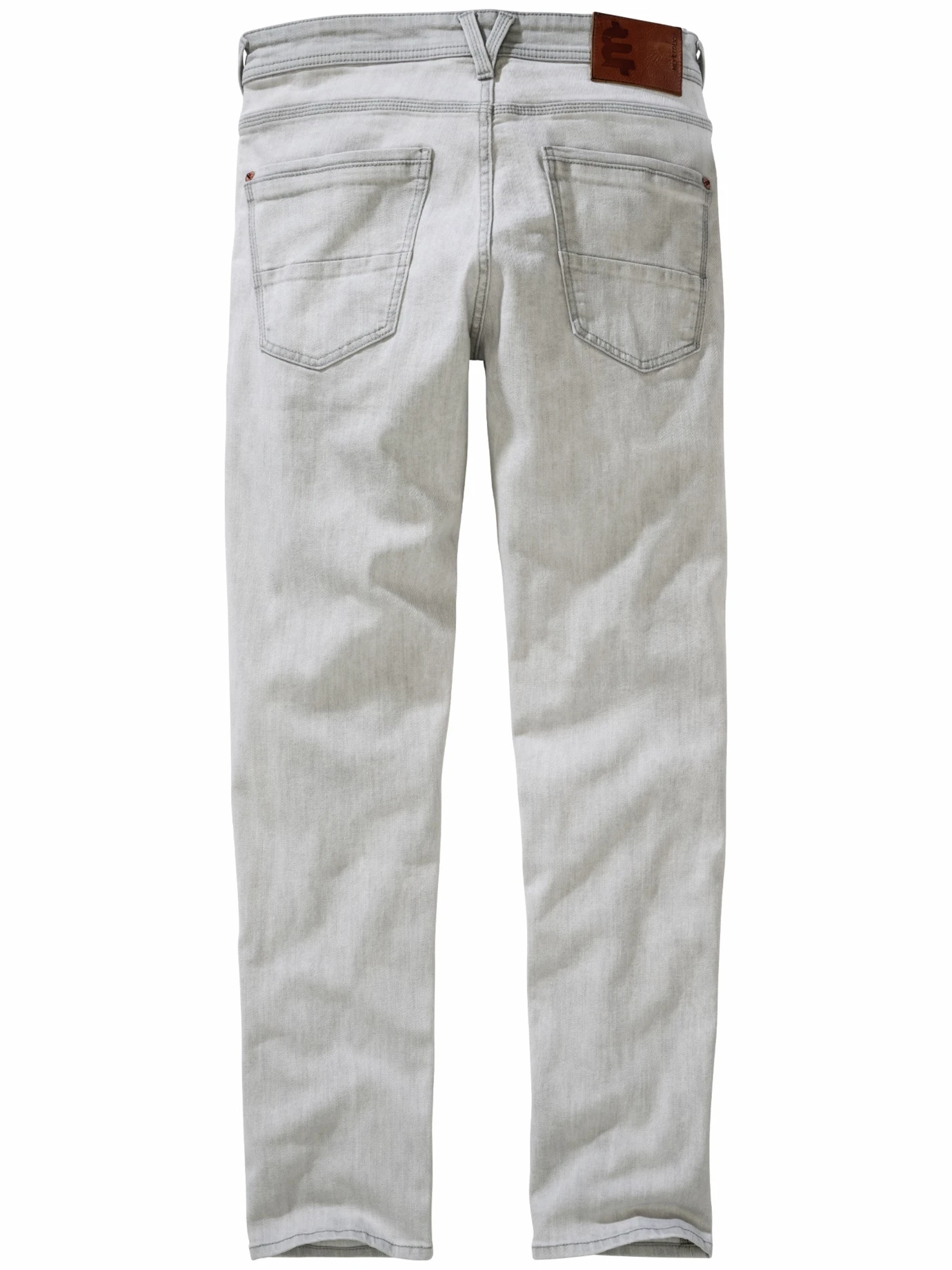 Verarbeitung: Stitching auf der extragroßen Münztasche, damit in die auch wirklich was reingpasst, schräg geführte Gürtelschlaufen, edler Lederpatch hinten. Five Pocket. Auf Metallknopf und Reißverschluss zu schließen. Slim Fit.