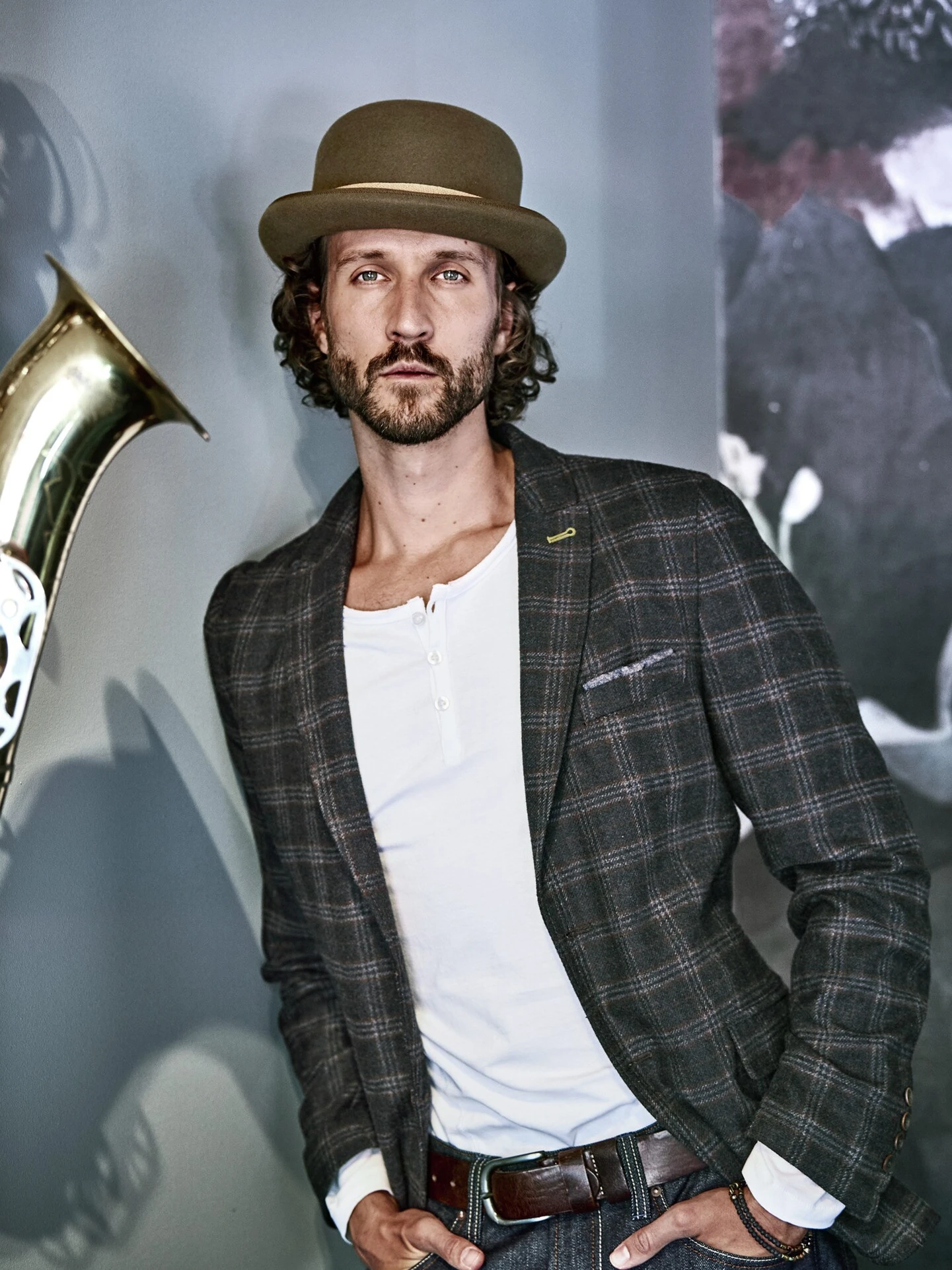 Als der Stummfilm das Laufen lernte. Ursprünglich sollte der Bowler den Kopf vor herabhängenden Ästen schützen, dann entdeckte Hollywood ihn für sich und setzte ihn den ersten Filmgrößen auf. Heute steht er klugen Köpfen mit verschmitztem Lächeln noch immer gut. Typisch sind die runde Form und die kurze Krempe.