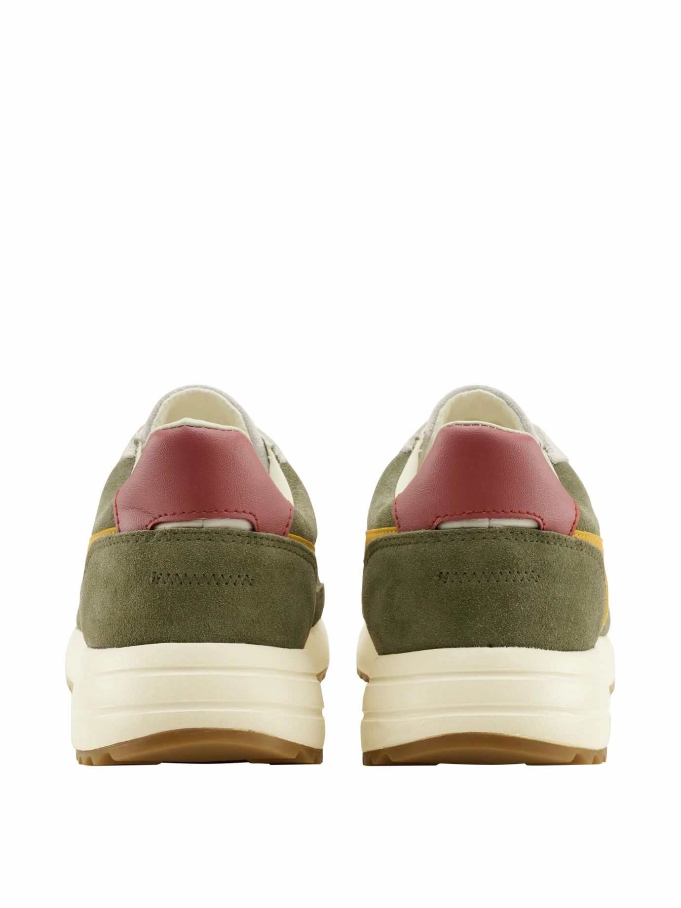 Material: Obermaterial: Rindleder, Polyester. Futter: Polyurethan, Polyester. Decksohle: Polyester. Fest montierte Laufsohle: Polyurethan. Imprägnieren und Flecken feucht abtupfen.