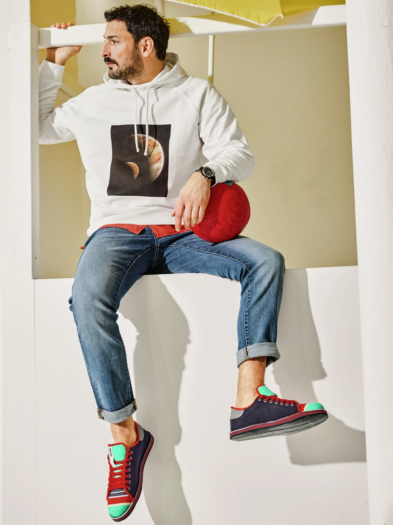 Im früheren Leben schirmte er die Sonne Italiens ab. RE49 sammelt für den Mare die wunderschön bunten Sonnenschirme an den Stränden Italiens und fertigt daraus diesen farbenfrohen Sneaker (schützt auch weiterhin noch vor UV-Strahlen). Innen ist er gefüttert aus aufbereiteten Handtüchern (schön auch wenn Sie ihn barfuß tragen, es scheuert nichts und die Füße bleiben frisch). Für gutes Abrollen sorgt eine Laufsohle aus aufbereiteten italienischen Reifen. Vermittelt auch hierzulande gute Traktion. Handgefertigt in Italien.