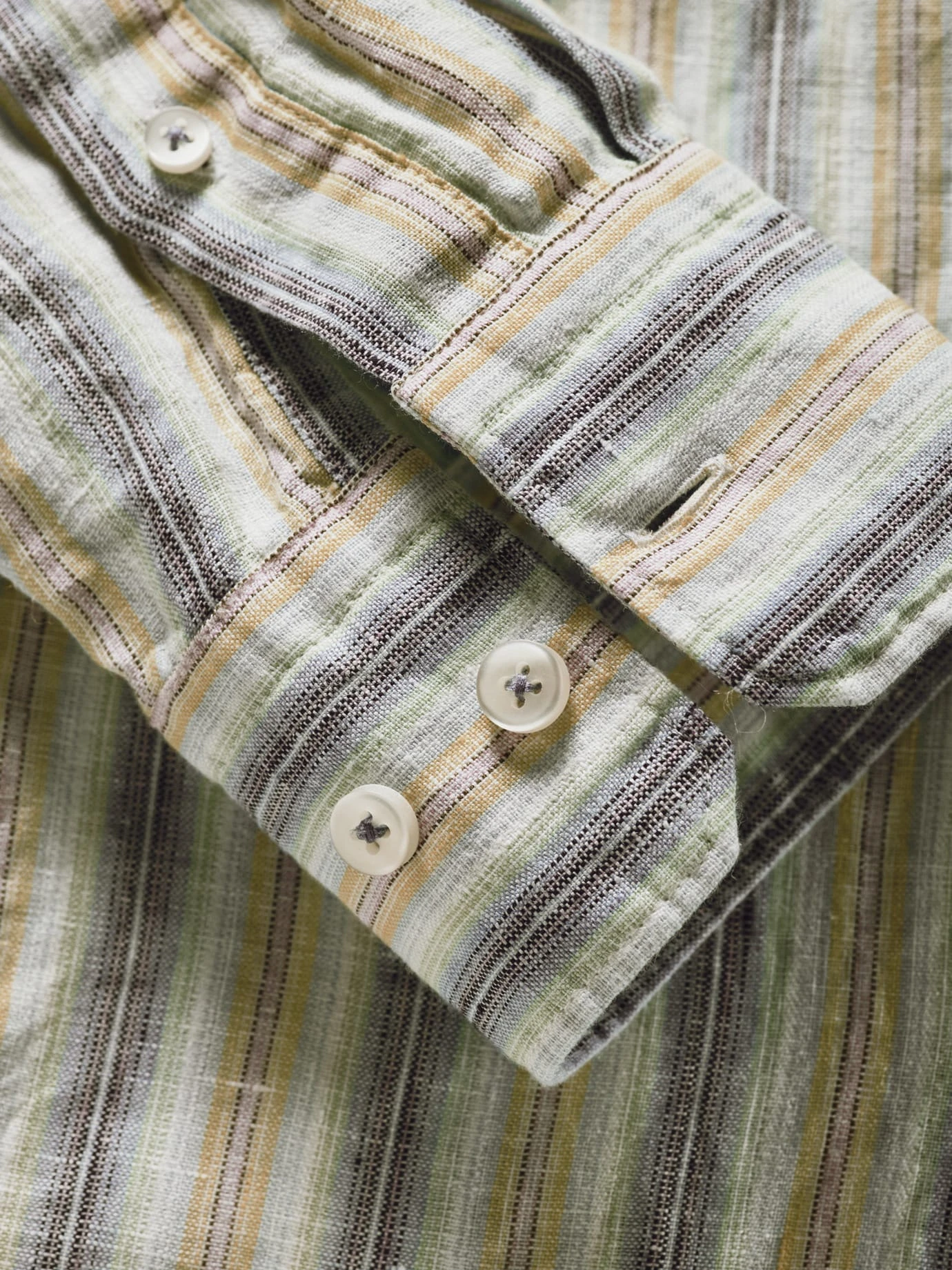 Es wird sonnig. Das gilt hoffentlich für das Wetter und mit diesem wertigen Leinenhemd garantiert für den Kleiderschrank. Durch die atmungsaktiven Naturfasern ist es leicht und luftig, selbst wenn Sie mal ins Schwitzen kommen sollten, bleibt es frisch. Die leuchtenden, garngefärbten Streifen geben der Kombinationsvielfalt Raum, sie sind sowohl mit Büroumgebungen als auch mit Freizeitangeboten kompatibel. Am liebsten Ärmel krempeln und den Tag genießen. Übrigens: aufs Bügeln einfach verzichten, wirkt am coolsten.