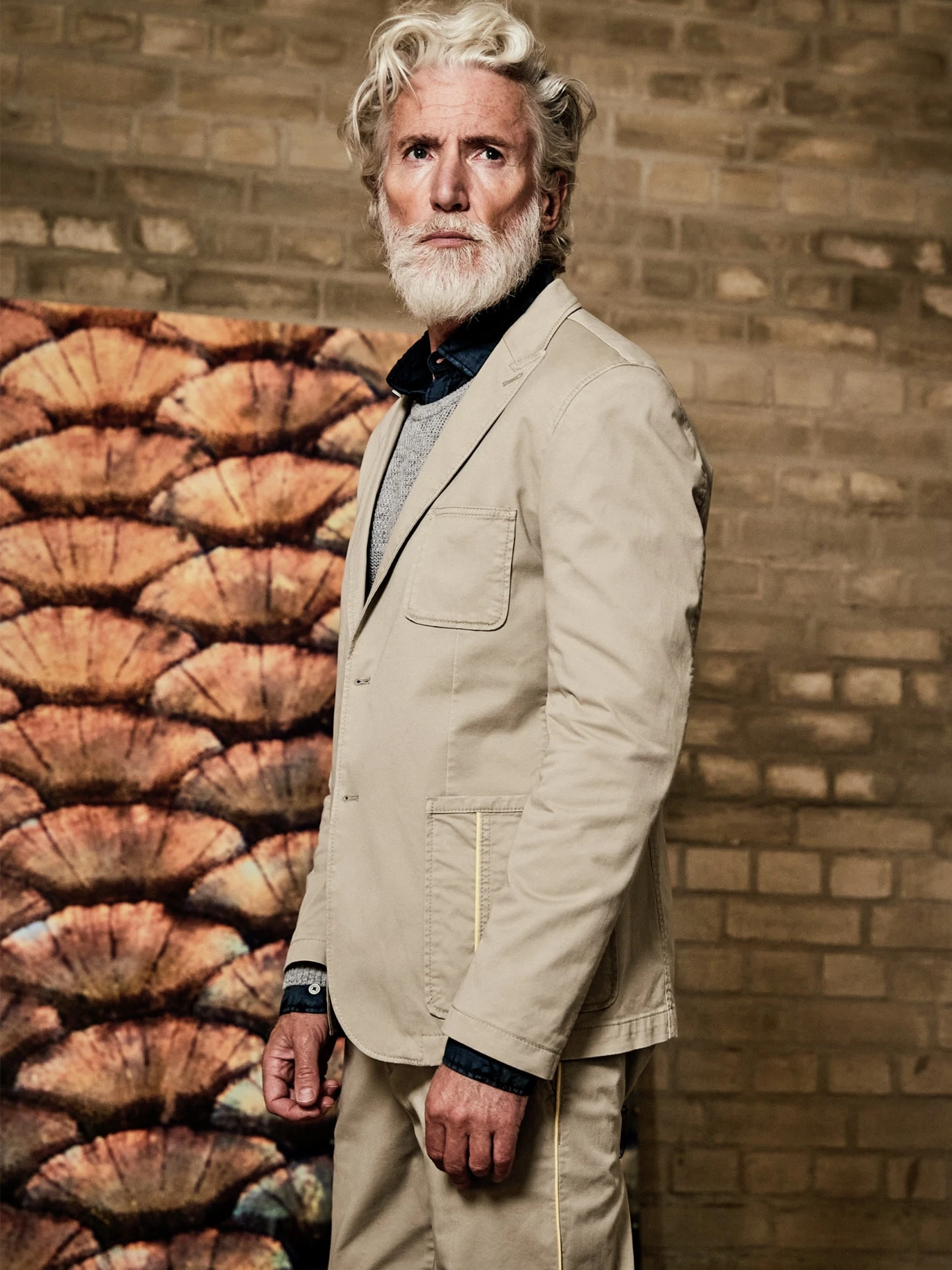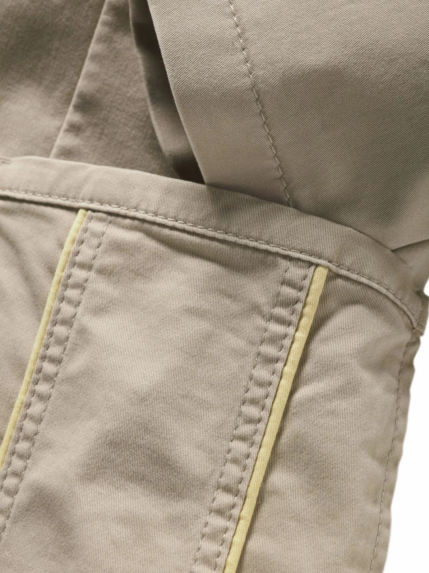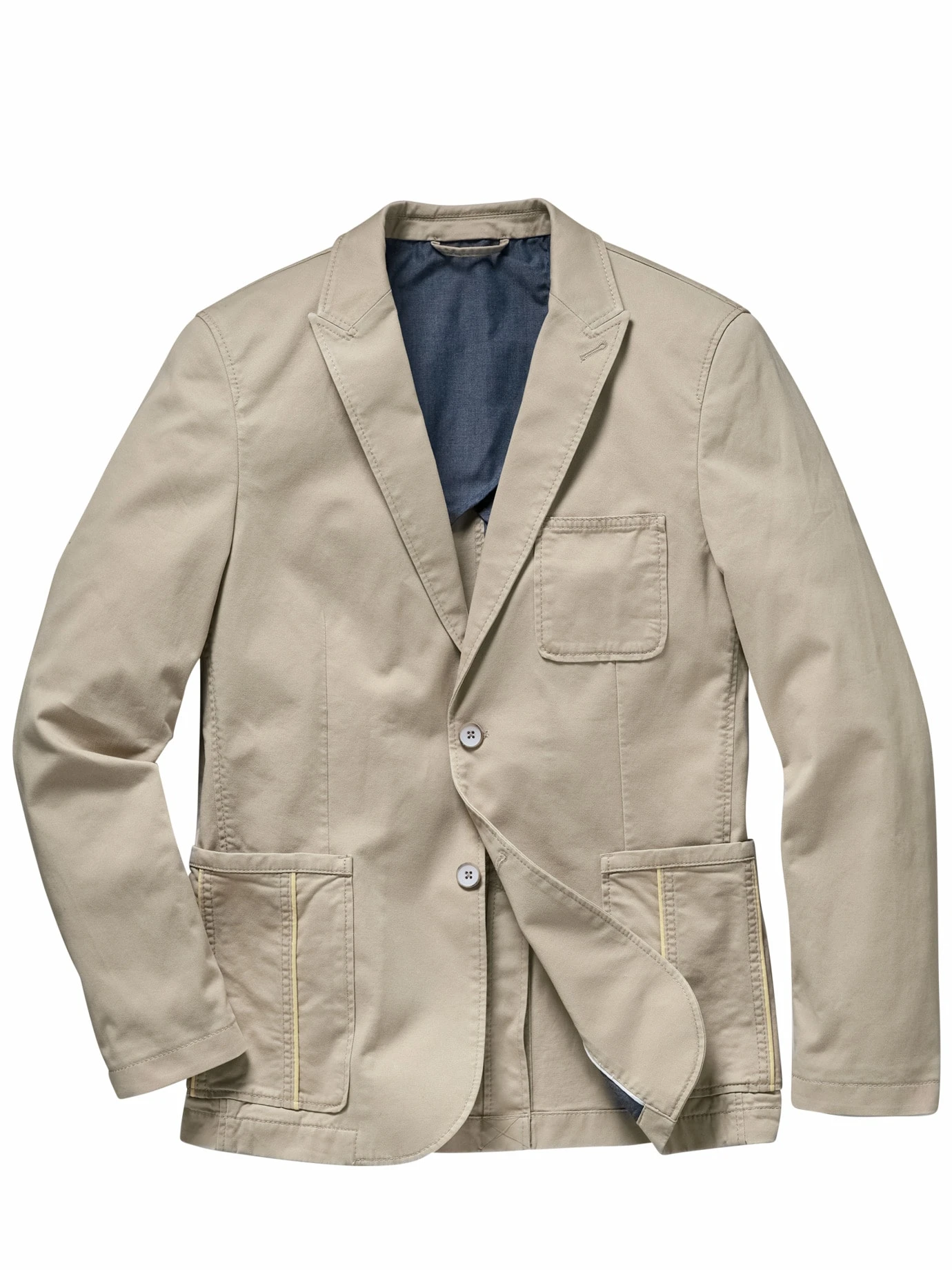 Eines vom Team Anpacker. Mit den akzentuierenden Paspelnähten beweist das Sakko Mut und Selbstbewusstsein. Es weiß, dass sich kein Fädchen kräuselt und leistet sich auf den Workwear-Taschen Paspeln in Zitronengelb, die wie ein Spot jede Naht beleuchten. Noch tiefere Einblicke gewährt das Futter aus weichem Chambray mit Piping (eingenähter Einsatz für einen guten Stand) in Schneiderverarbeitung. Der Stoff mit viel luftiger Baumwolle und etwas Elasthan für die Flexibilität kann was ab. Die sanfte Vorwäsche verleiht dem Sakko Lässigkeit, der Beige-Ton ist entspannter als reines Weiß. Entweder zum schwarzen Hemd oder mit bedrucktem Hemd und Pullover tragen, gerne mit Signature Uhr oder Armband. Perfekt wird es mit der passenden Hose (Nr. 24-6497-2).