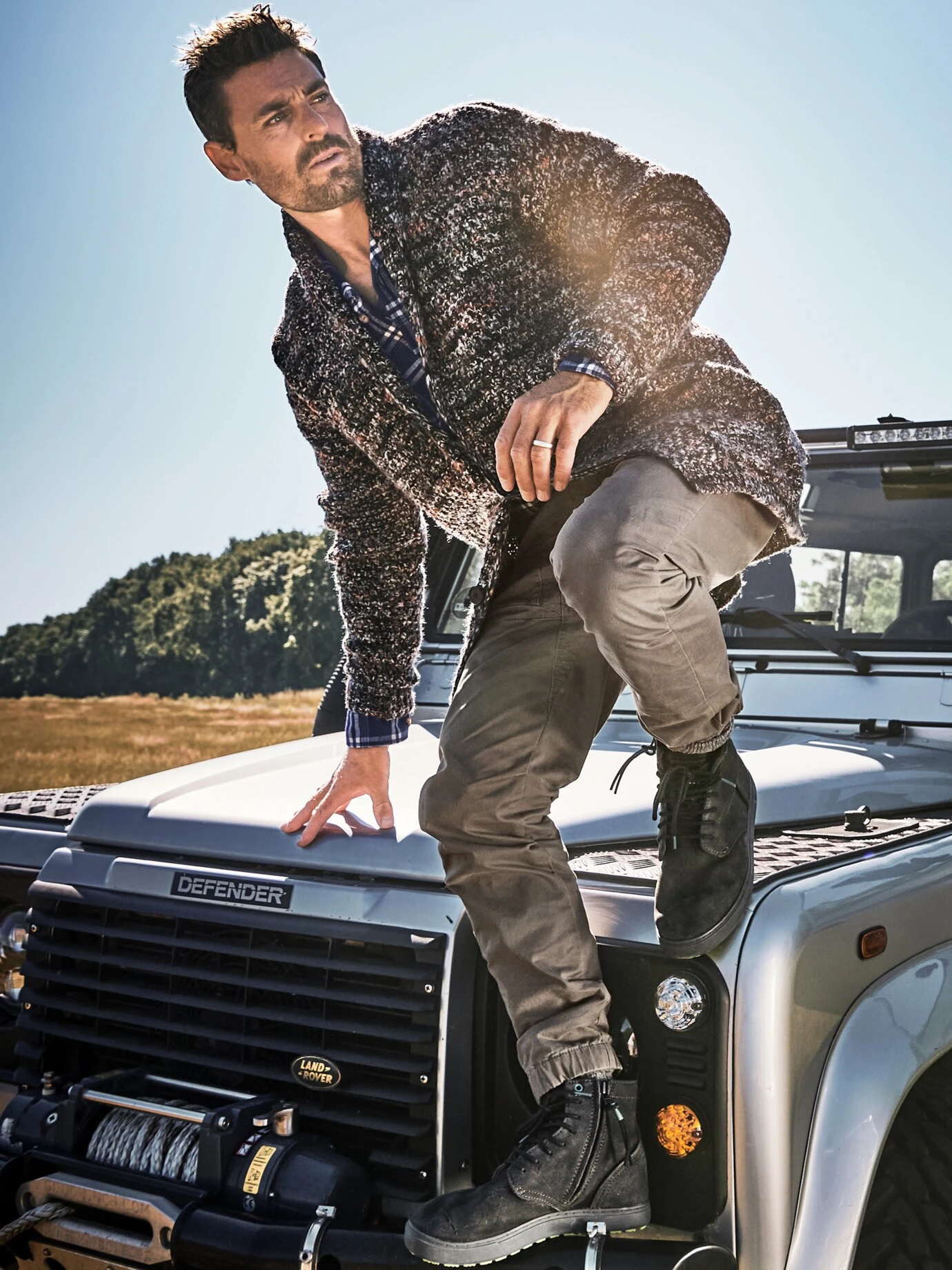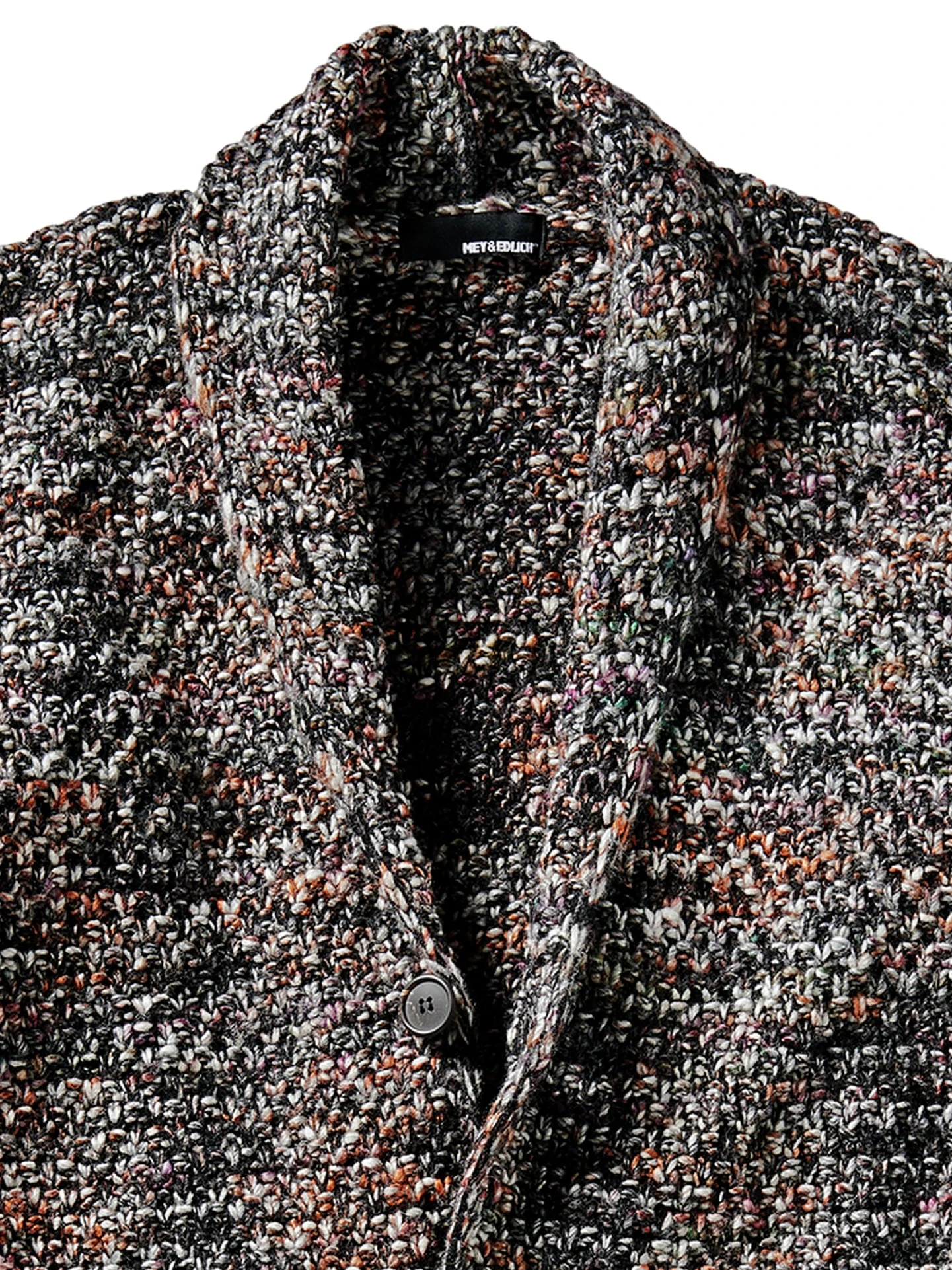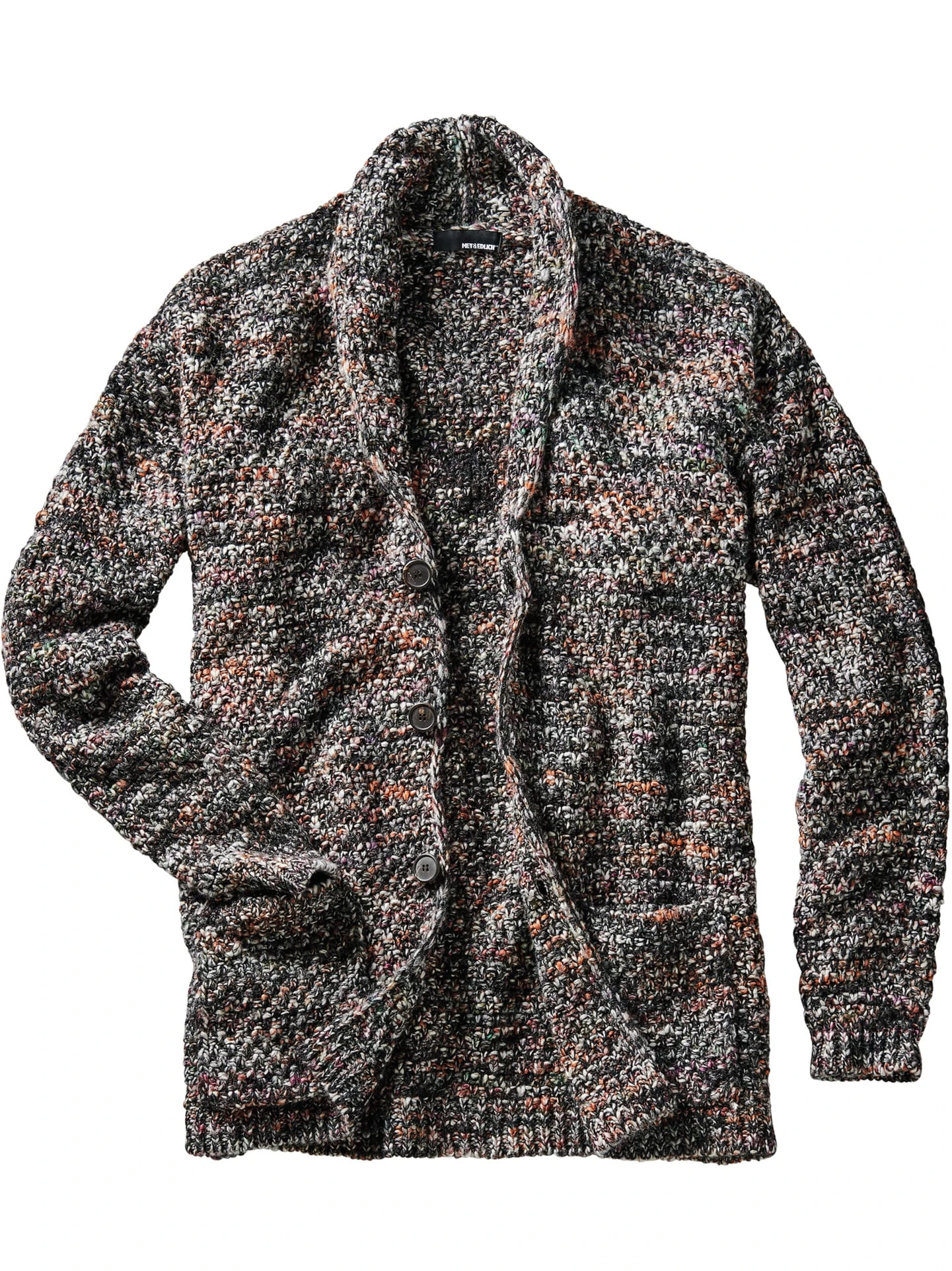 Wenn das Strickwerk an Lichter der Stadt erinnert, die erst beim Anflug an Kontur gewinnen. Dafür verwendet ein italienischer Handwerksbetrieb einen dickeren Faden, der zum einen willkürlich und leicht verdickt gesponnen und zum anderen changierend in seinen Farben ist. Die ausgewogene Mischung aus italienischer Wolle – in jede Richtung klimaregulierend – und formstabilem Hightech macht die Jacke pflegeleicht. Zitiert Cardigan (breite Schultern formender Schalkragen) und Sakko (auf drei Knöpfe zu schließen). Am besten zu Raw-Jeans. Kaugummi und Handy in die tiefen Taschen versenken.
