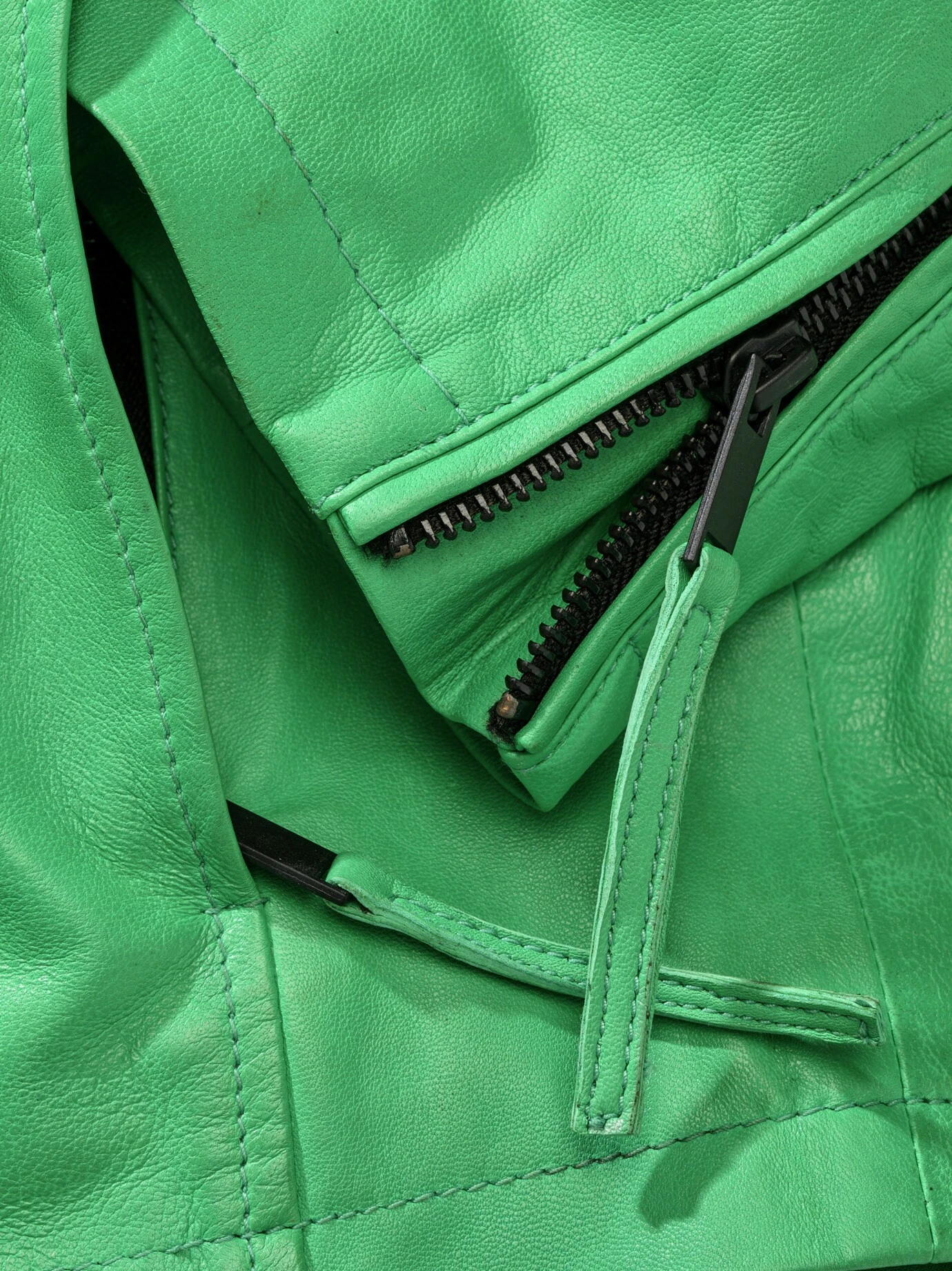 Unkonventionell in Form und Farbe. Nicht braun, nicht schwarz – diese Lederjacke strahlt und sagt: „So schön kann es aussehen, wenn man sich außerhalb der Komfortzone bewegt.“ Dazu die ungewöhnliche Form, Bikerjacke inklusive Kapuze, und das knautschweiche Lammnappaleder. Und sie wird mit jedem Tragen nur noch schöner und bequemer. Der Rest ist solide: klar und gerade geschnitten, ohne auffallende Nähte, einfacher Reißverschluss.