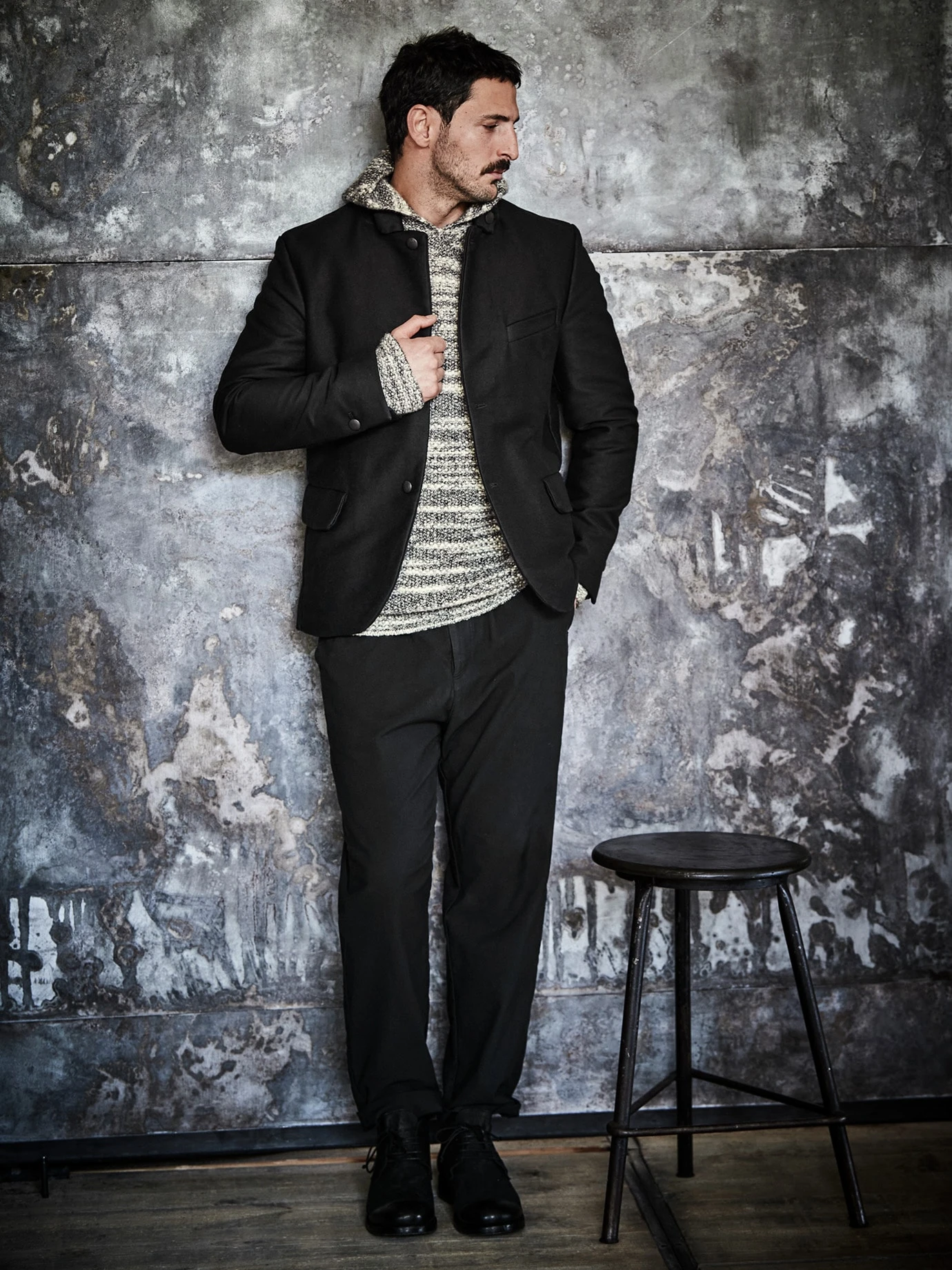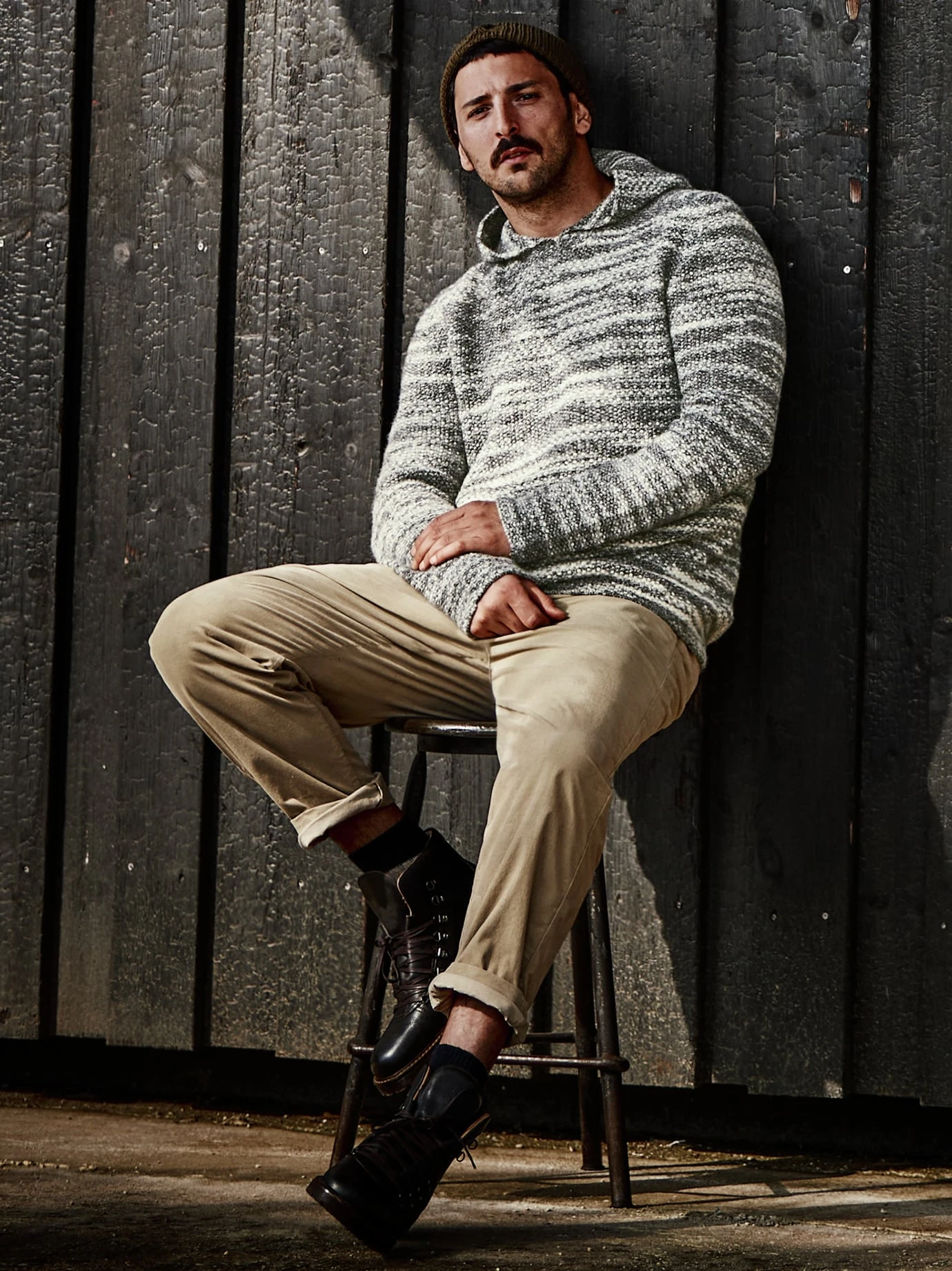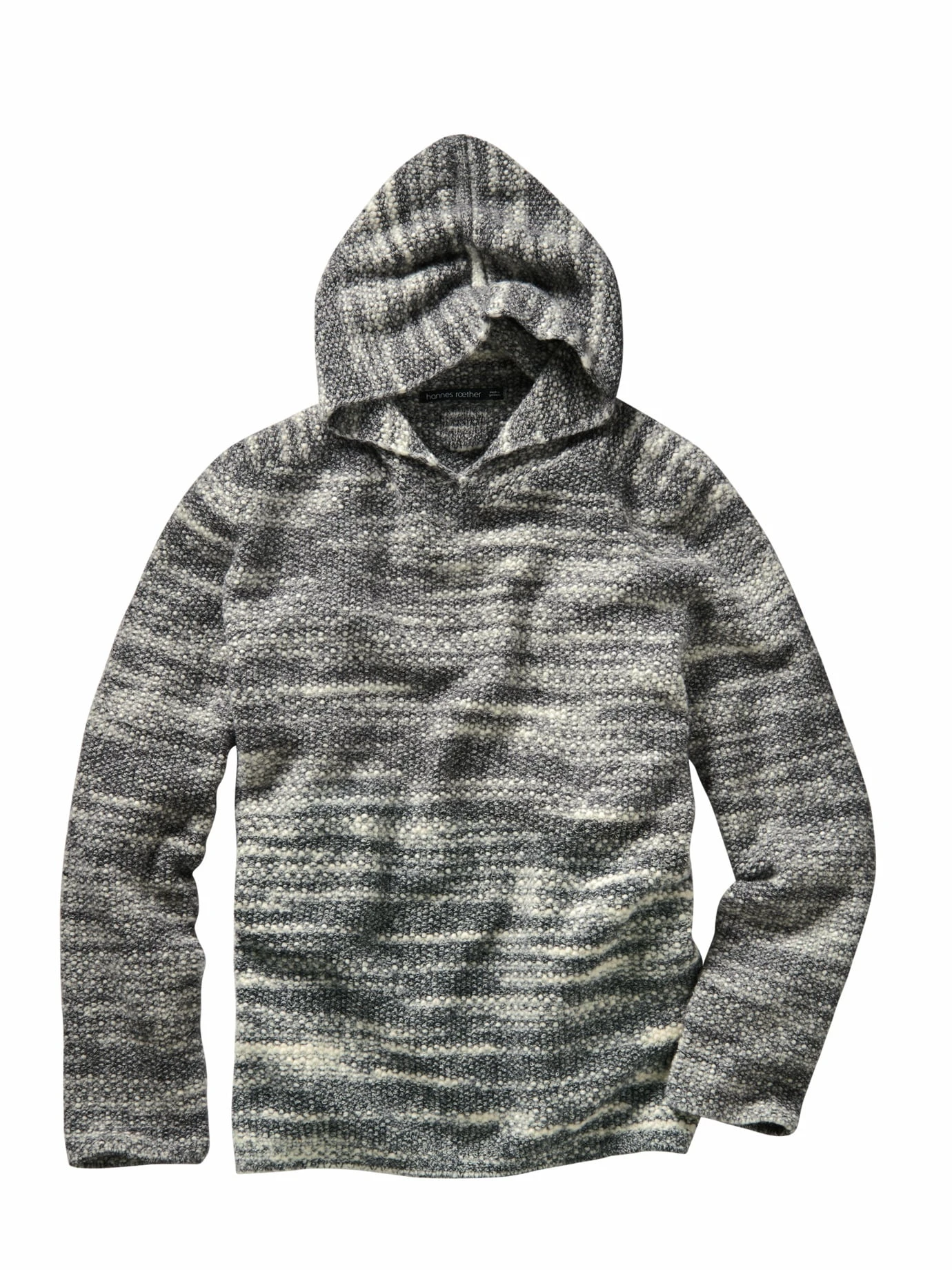 Wirkt zuverlässig. Auf den strukturierten Strickhoodie von hannes roether ist Verlass, hap- und optisch, drinnen wie draußen: Das zweifarbige Garn kreiert den besonderen Melange-Look – und macht jedes Teil einzigartig. Gemacht für Männer, die auf 08/15 nichts geben, auf Komfort umso mehr: Der eingesetzte hohe Wollanteil wärmt und temperiert, bietet (dank der Prise Hightech) einen wirklich weichen Griff und den kernig winterlichen Look. Funktioniert solo bei Zimmertemperatur oder im Freien mit Outdoorweste. Gerade geschnitten und extra lässig, vom Meister der Masche.