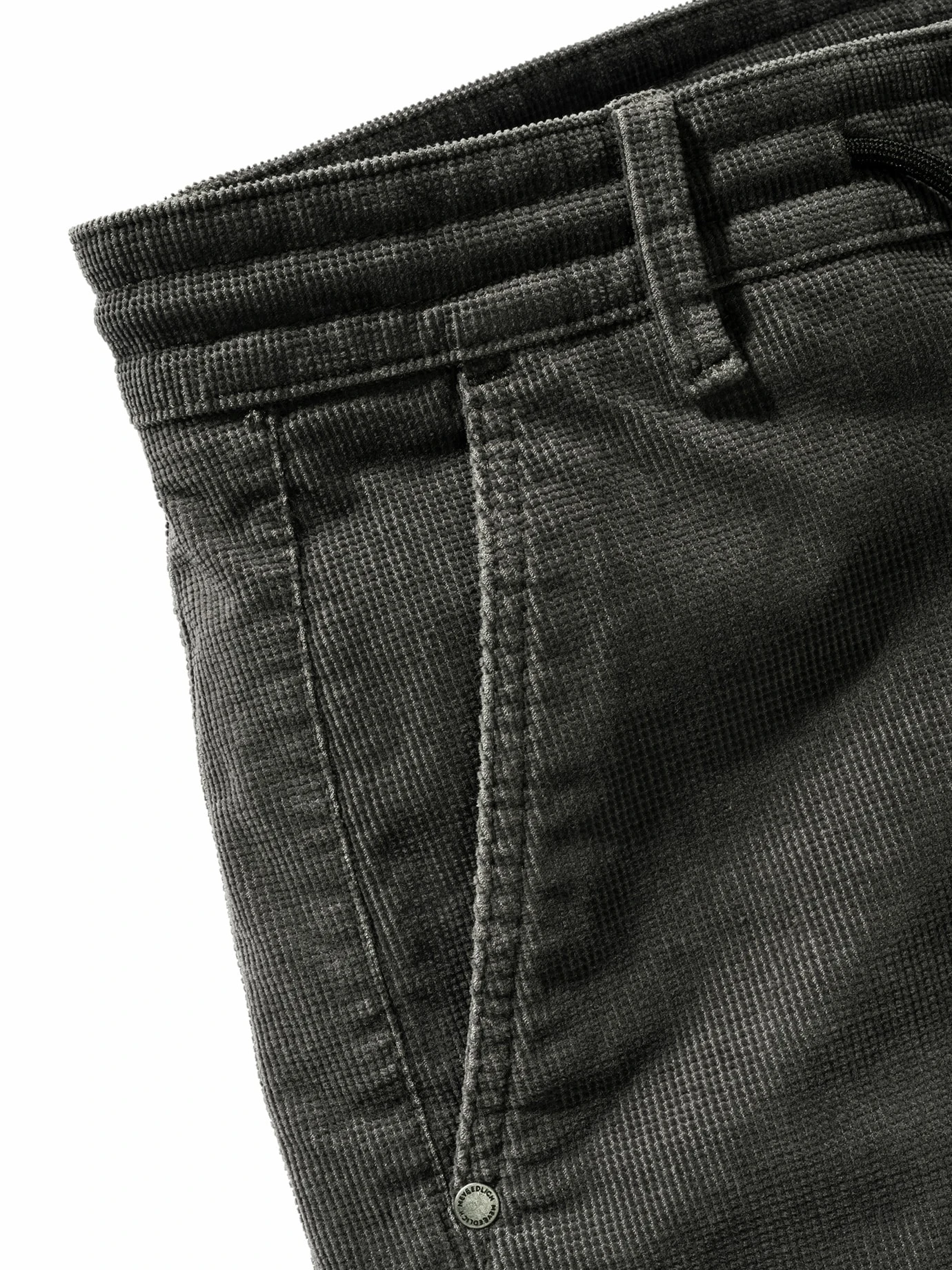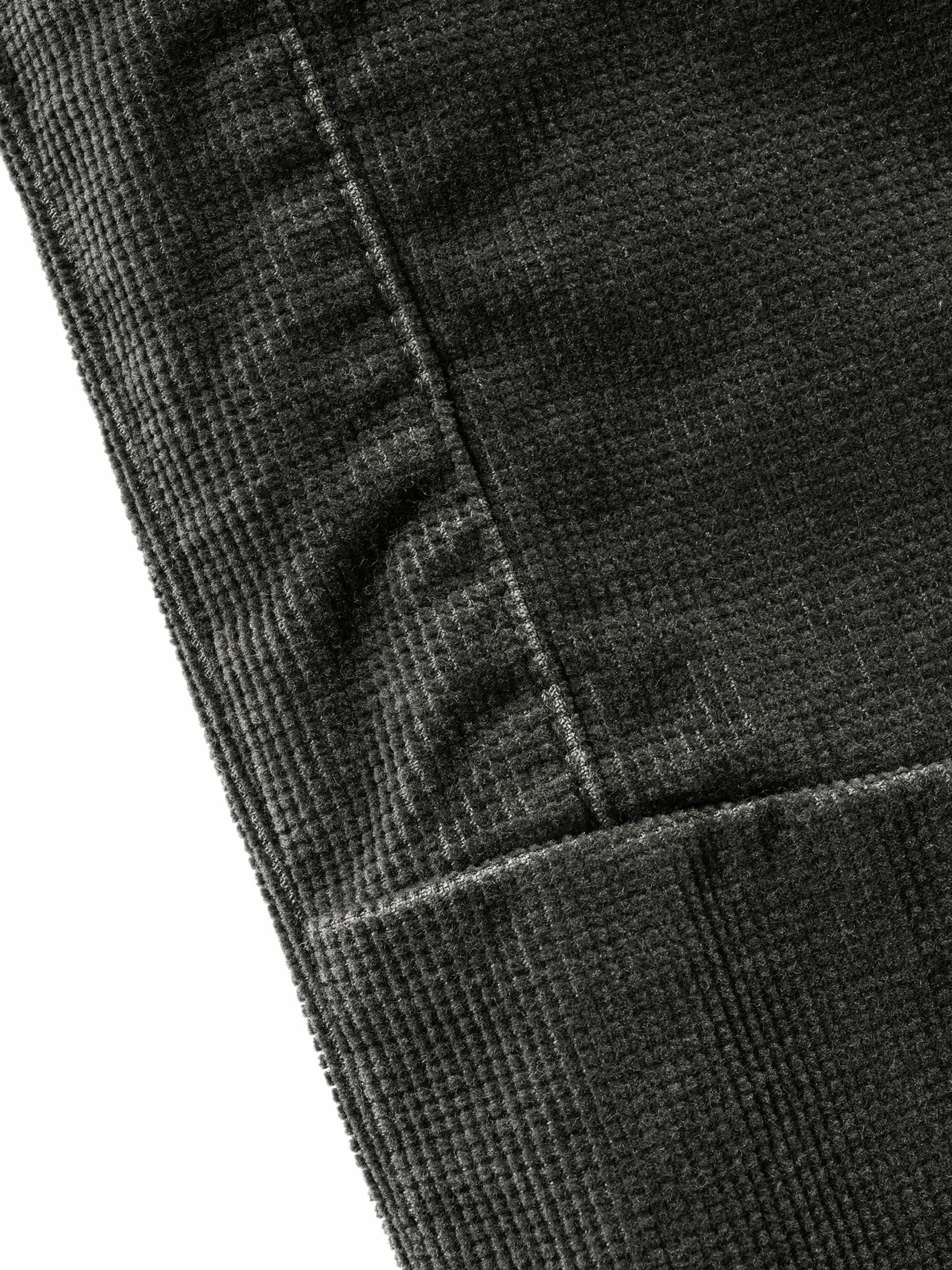 Auf der Suche nach Struktur? Struktur ist wichtig, diese Hose trägt sie. Statt an glatt erinnert sie an Cord. Aber nicht in seinen klassischen Bahnen, sondern mit quadratischen Noppen. Dass sie sich in Summe bequem trägt, liegt am Elasthan, darauf zahlt zusätzlich der Tunnelzug ein. Die Cuttings verleihen, angezogen, Dynamik.