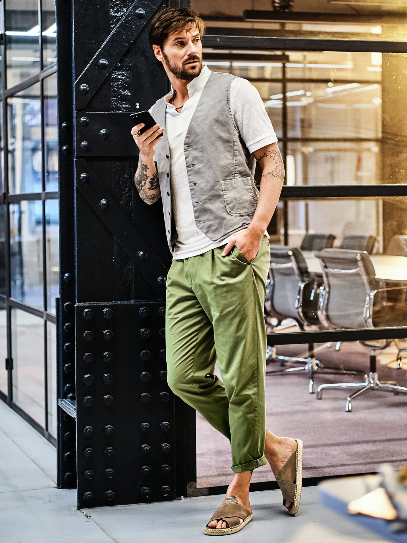 Ihre wahre Identität gibt sie nie preis. Unterm T-Shirt oder Leinenhemd liegt ihr Geheimnis behütet. Ein fetter, elastischer Bund lässt Platz zum Atmen, die Bundfalten sorgen für mehr Raum und erteilen an den Träger das Versprechen, dass die Hose selbst nach längerem Sitzen nicht zu spüren sein wird. Der in Deutschland gewebte Stoff ist dank einem guten Schuss Elasthan Garant für Bequemlichkeit. Dazu passt, worin Sie sich alltags fortbewegen.