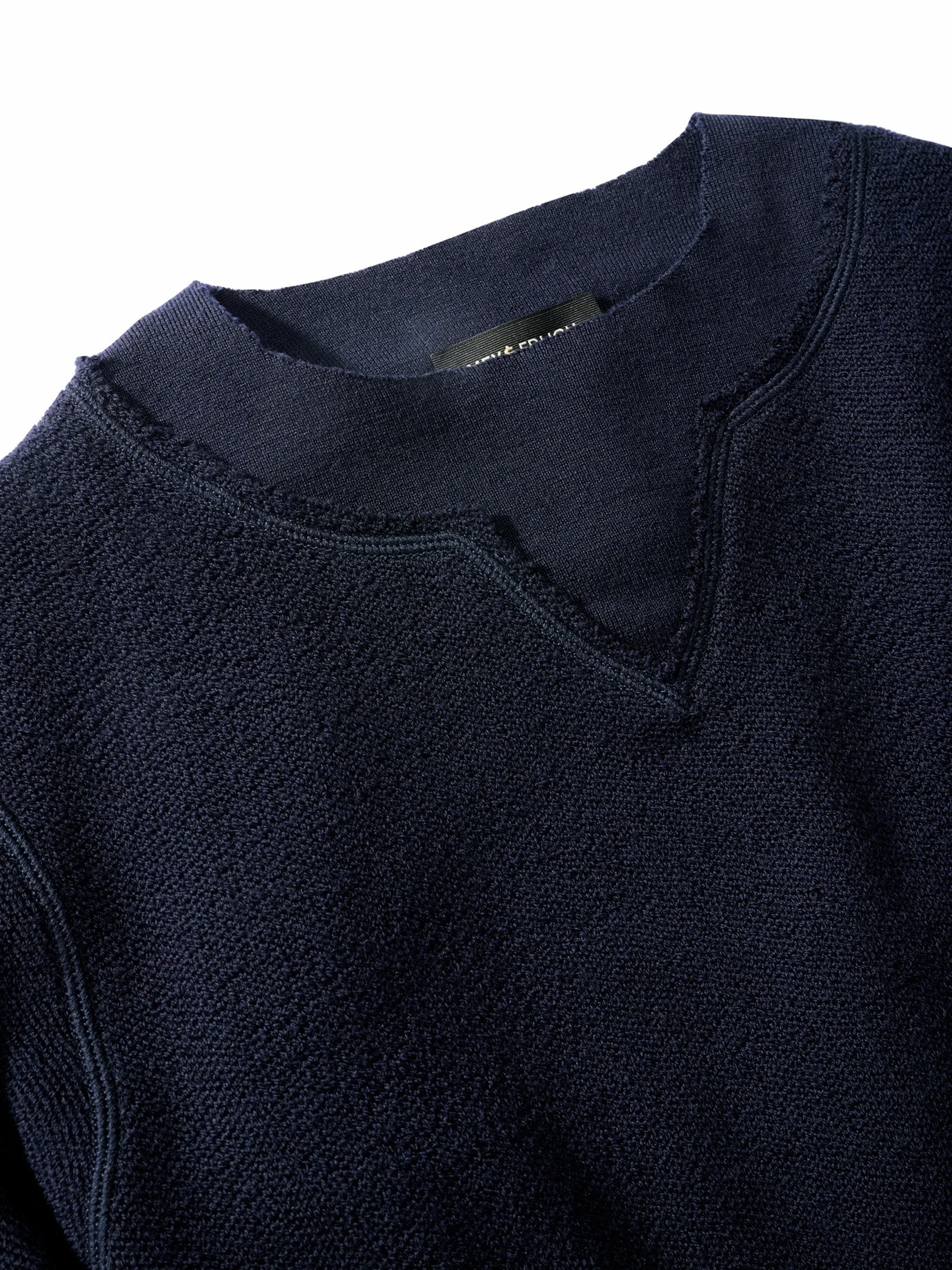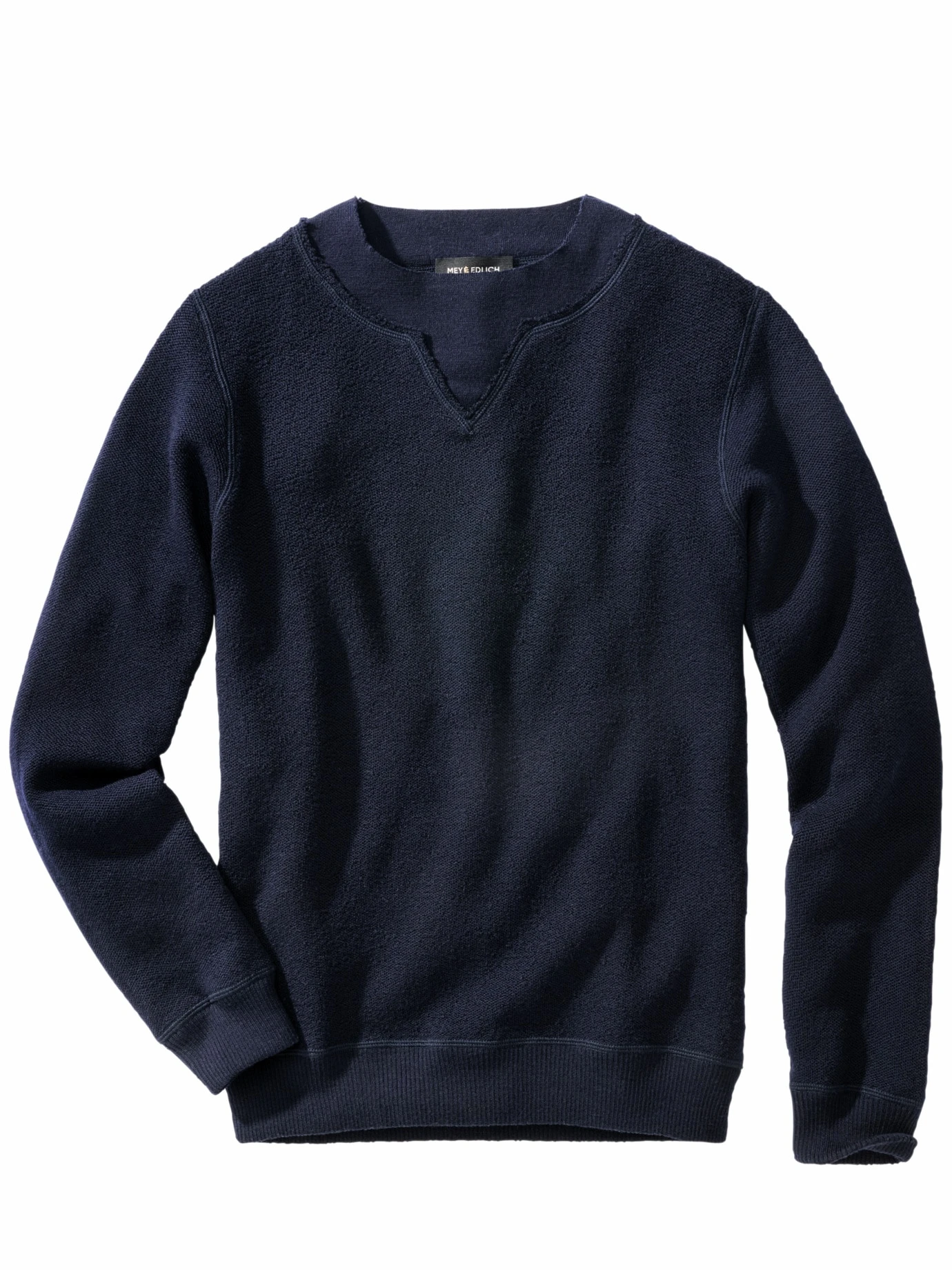 Selbstbewusste Symbiose. Eher Pullover oder eher Sweatshirt? Egal, Fakt ist: Sein Zwiespalt tut ihm gut! Denn der Sweatpullover sieht aus wie gestrickt und bündelt die positiven Eigenschaften beider Namensgeber: Rippbündchen an den Abschlüssen und ein offenkantiger Layer-Ausschnitt schenken die typische Lässigkeit, der leicht angeraute Strick mit viel winterfester Wolle wird – in 12 Gauge und mit leichter Viskose – komfortabel auf Zimmertemperatur gebracht. Für alle diejenigen, denen ein Sweatshirt im Winter zu kalt, ein Pullover viel zu normal ist.
