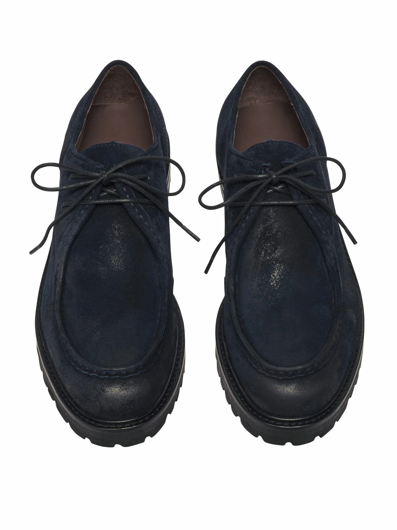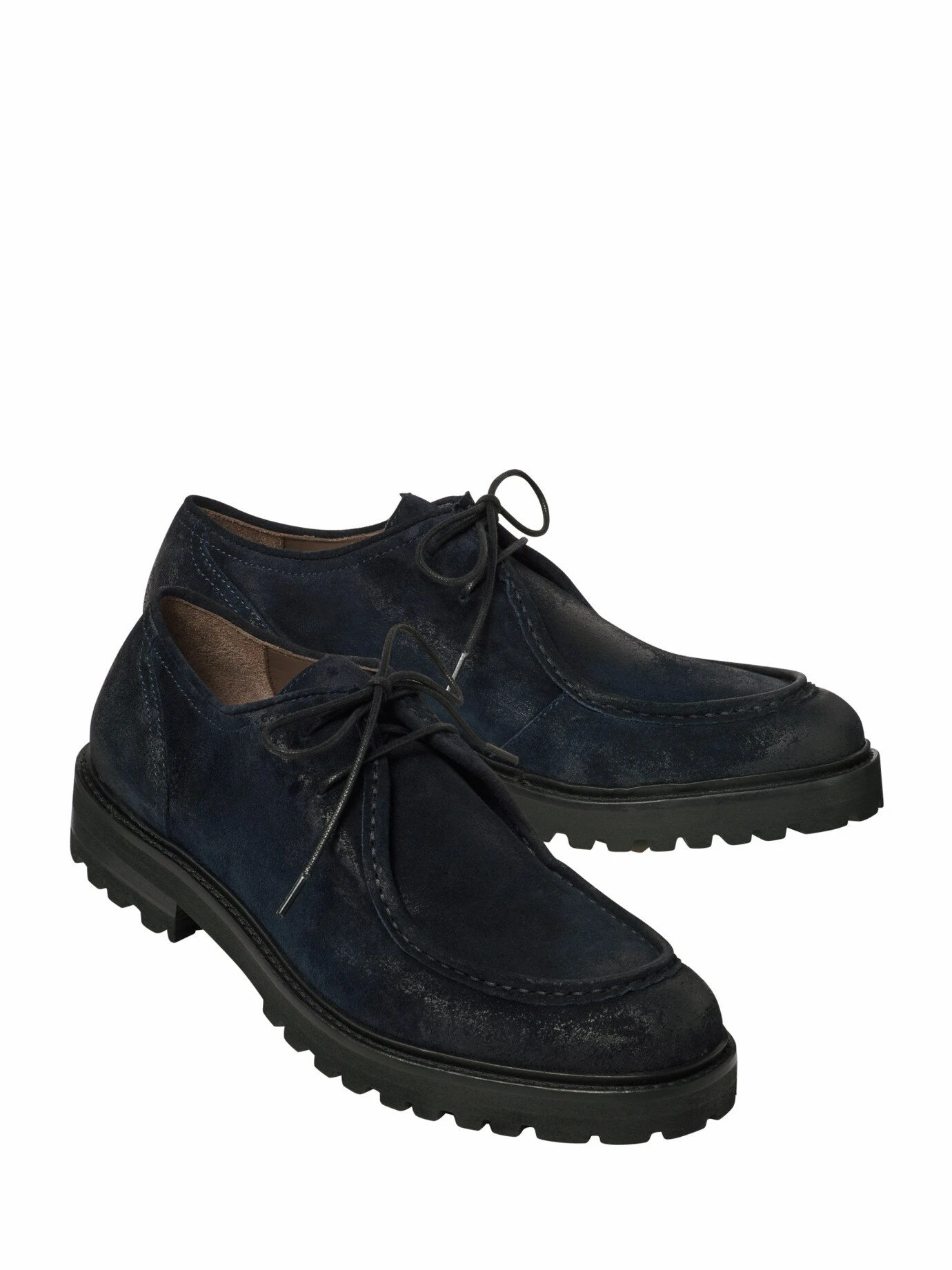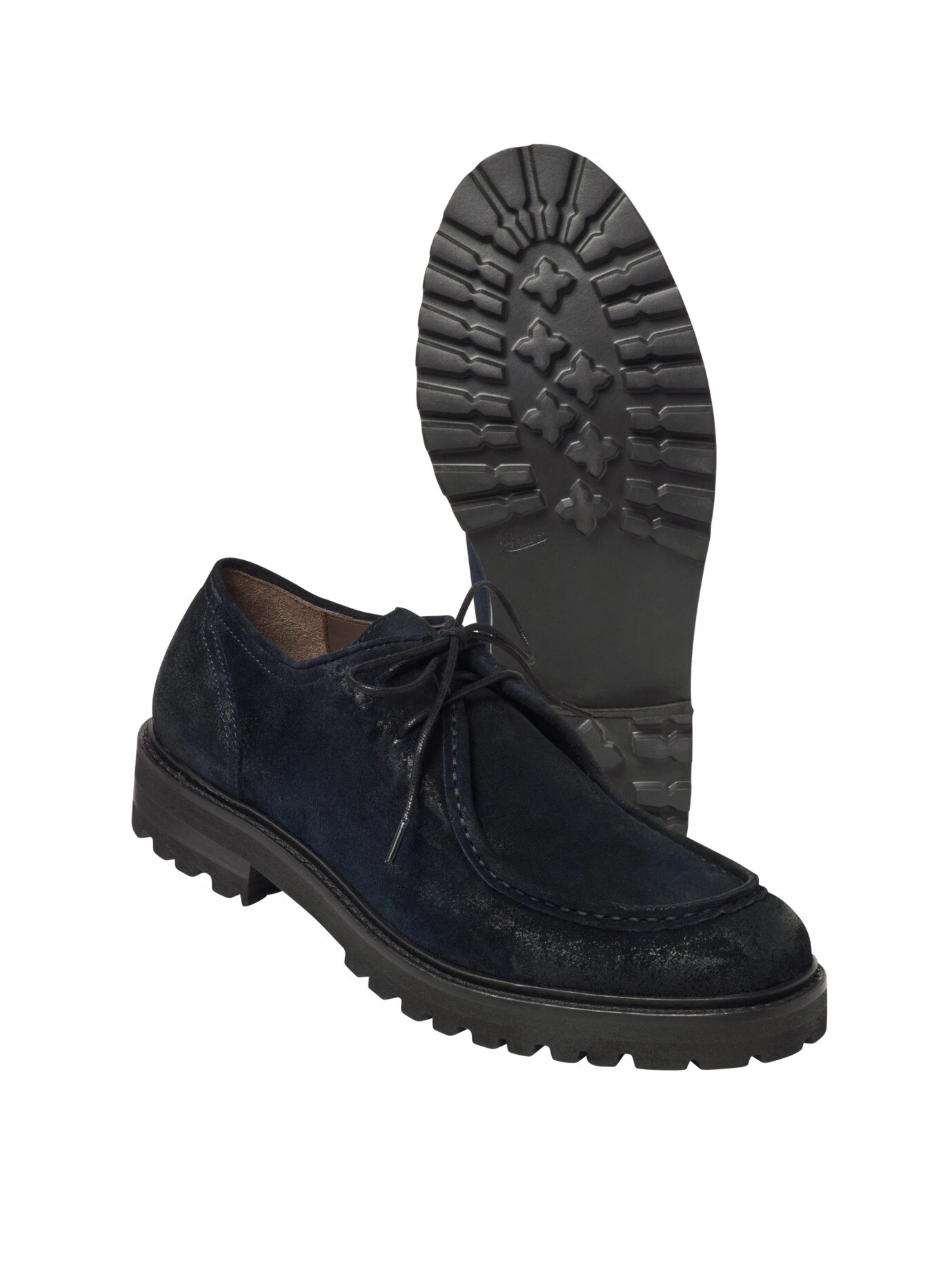 Die Nachfolgegeneration des einstigen Fischerschuhs Nordeuropas. Stilistisch erinnert er noch immer an einen Norweger, jenen Schuh im Derby-Schnitt, mit der nach außen gebogenen Sohle, der umlaufenden Naht an der Schuhspitze und dem hohen Spann, damit selbst dicke Socken und viel Arbeit reinpassen. Heute wirkt er deutlich filigraner: Das derbe Leder von früher weicht feinem Kalbrauleder aus Italien, die wasserdurchtrittsichere Gummisohle gibt bei jedem Schritt nach. Passt von rustikal bis sportlich, mit dunkler Hose auch ins Büro.