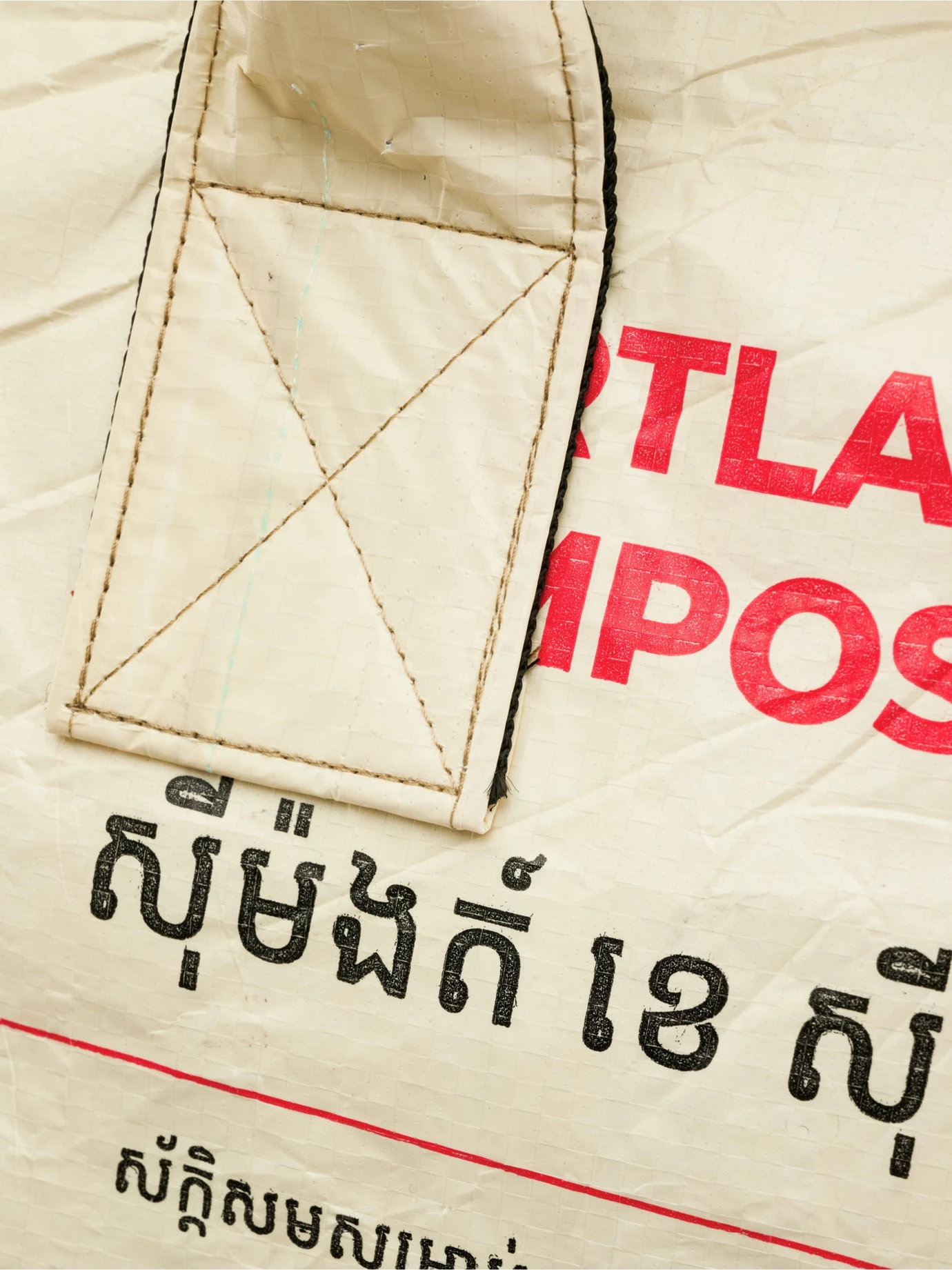 Weltgewandter Transporteur für Wäsche, Kaminholz, Tageszeitung, Mategetränke, Strand, Leben. Tatsächlich war die Tasche im ersten Leben ein Zementsack, gesammelt in Kambodscha, Vietnam oder Thailand, das Futter war ein Reissack in Kambodscha. Vernäht vor Ort, um bald sein zweites Leben als Ihr robuster Freizeit-Buddy zu beginnen. Kann Lasten tragen: der abnehmbare, 5 cm fette Schultergurt war ursprünglich mal ein Schiffscontainerspanngurt im Hamburger Hafen (klemmt auch an anderen Taschen).
