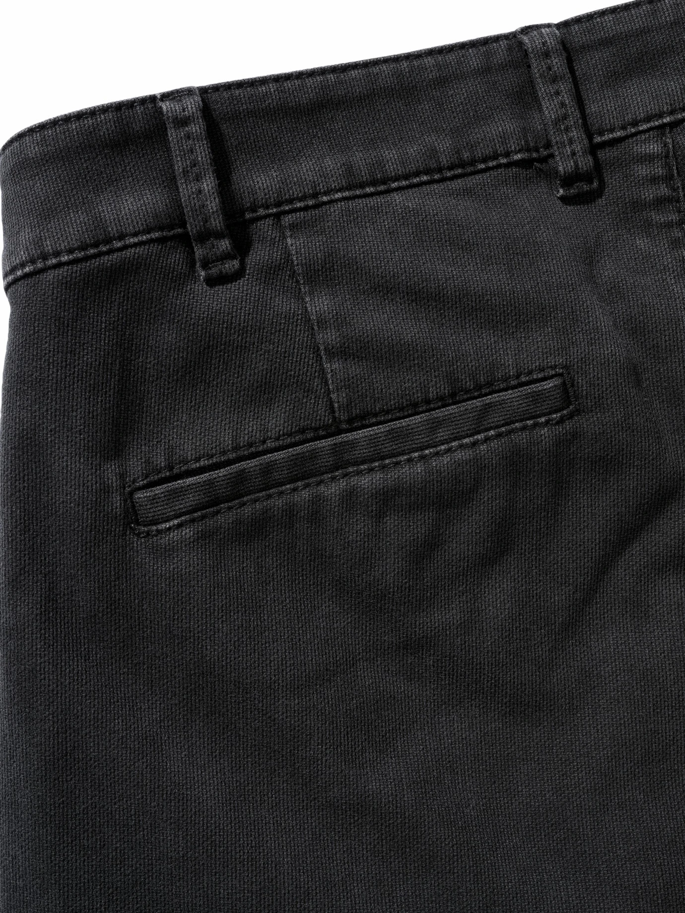 Verarbeitung: Feine Steppungen. Französische Taschen, Paspeltaschen am Gesäß. Slim Fit.