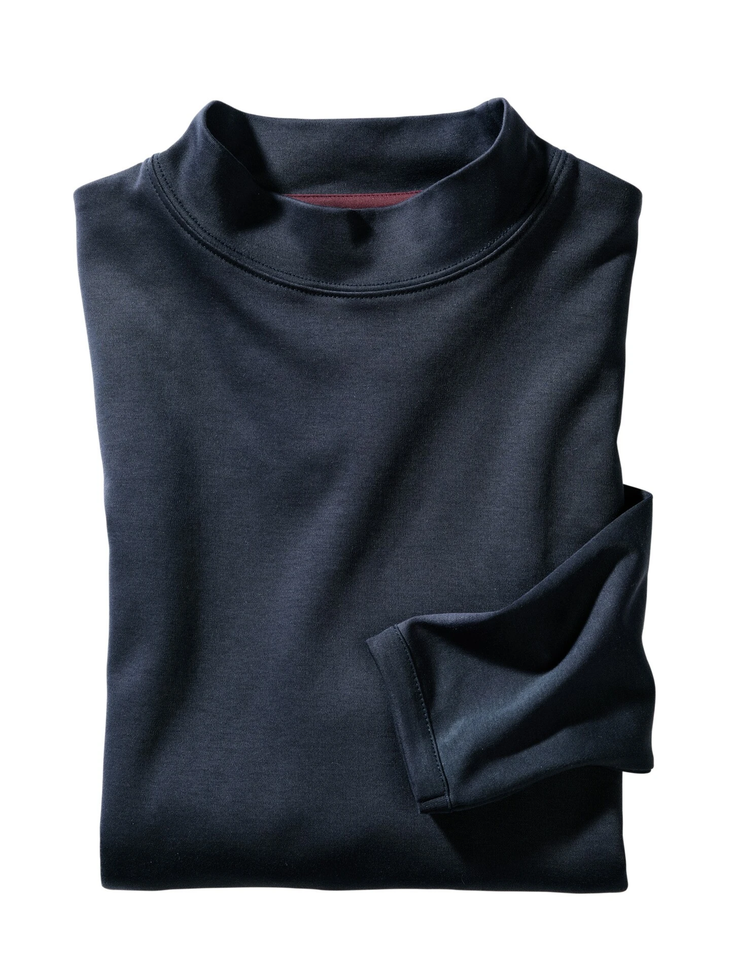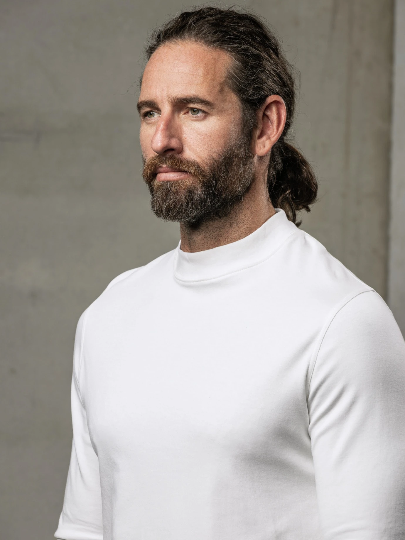 So denkt sich’s leichter. Ein Turtleneck ist zum Ingebriff für den kreativen Vordenker geworden, der im Anzug einfach nicht halb so viel Charisma erzeugen würde. Sein Kennzeichen? Ein Longsleeve in Basisfarbe, das zum alleinigen Drunterziehen aber viel zu schade wäre. Im Gegenteil: Es fordert regelrecht, auch allein getragen zu werden. Mit 3,5 cm Kragenhöhe sitzt sein Kragen übrigens noch bequemer als ein Rolli am Hals und wirkt nie so nackt wie ein Rundhalspullover.