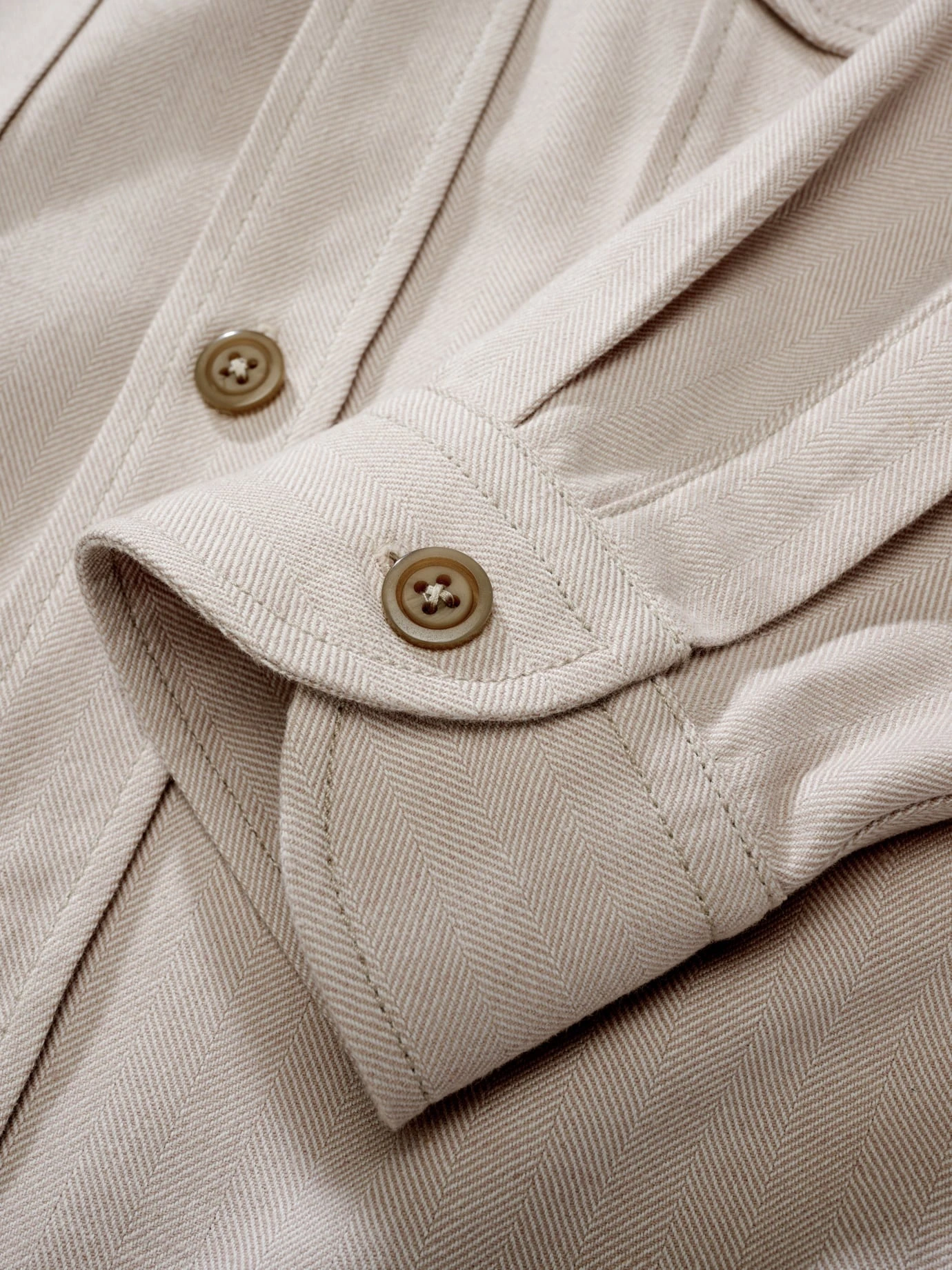 Ein Hemd, das beinahe so viel kann wie ein Schweizer Messer. Overshirts sind Allzweck-Tools. Sie retten Tage, an denen man sonstwas zwischen Hemd und Jacke braucht, weil sie beides sind. Mit zweifarbigem Herringbone-Gewebe ist dieses sogar stadtfein, was Ihr Repertoire nicht nur um die Stoffhose erweitern könnte. Dazu kommt der neue Funktionsumfang mit den beiden übertrieben tragfähigen Brusttaschen für Phone, Brillenetui, Papiere, Plastik und womit Sie sonst Ihre Hosentaschen entlasten möchten. Egal was Sie vorhaben: es klappt!