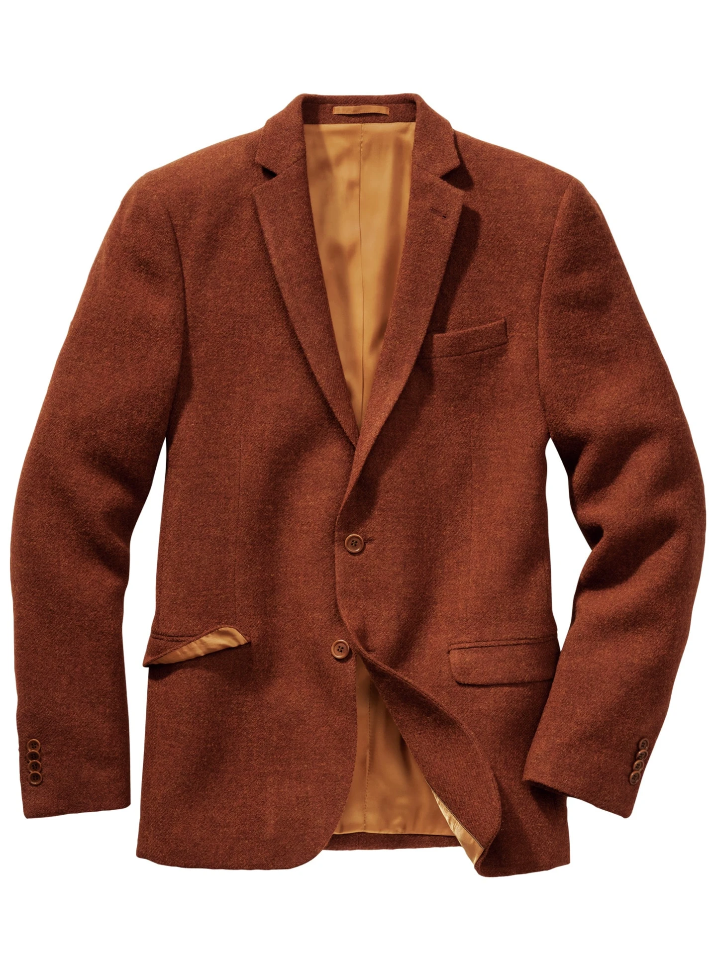 Zu Ehren des Ayers Rock. Mit einem Sakko in der Farbe des heiligen Uluru schaffen Sie (wohldosierte) Aufmerksamkeit. Das restliche Outfit stimmen Sie entsprechend ab: Das gesteinige Rot passt zu vielen Farben des Kleiderschranks, insbesondere zu allen Naturtönen von hellem Sand bis Nachtblau und Dunkelgrün. Der Stoff, ein italienisches Schurwolltuch, ist fühlbar strukturiert und erinnert an schottischen Tweed, ist ebenso langlebig und wärmt auch genauso gut. In diesem Sakko können Sie noch viele ehrwürdige Momente erleben – von privaten Höhepunkten bis zu wichtigen beruflichen Meilensteinen.