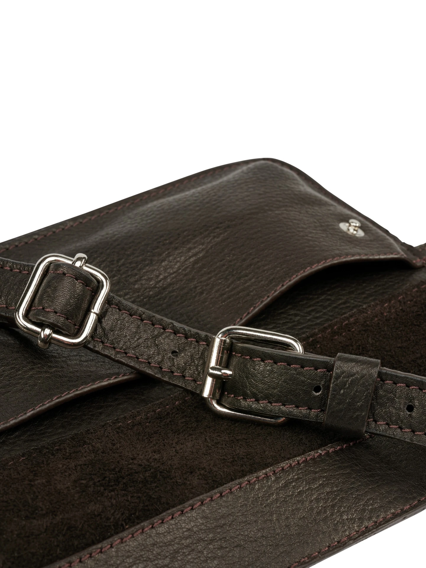 Material: Maße: 22 x 13 x 1 cm (B x H x T). Gurt: 113 cm. Rindleder.