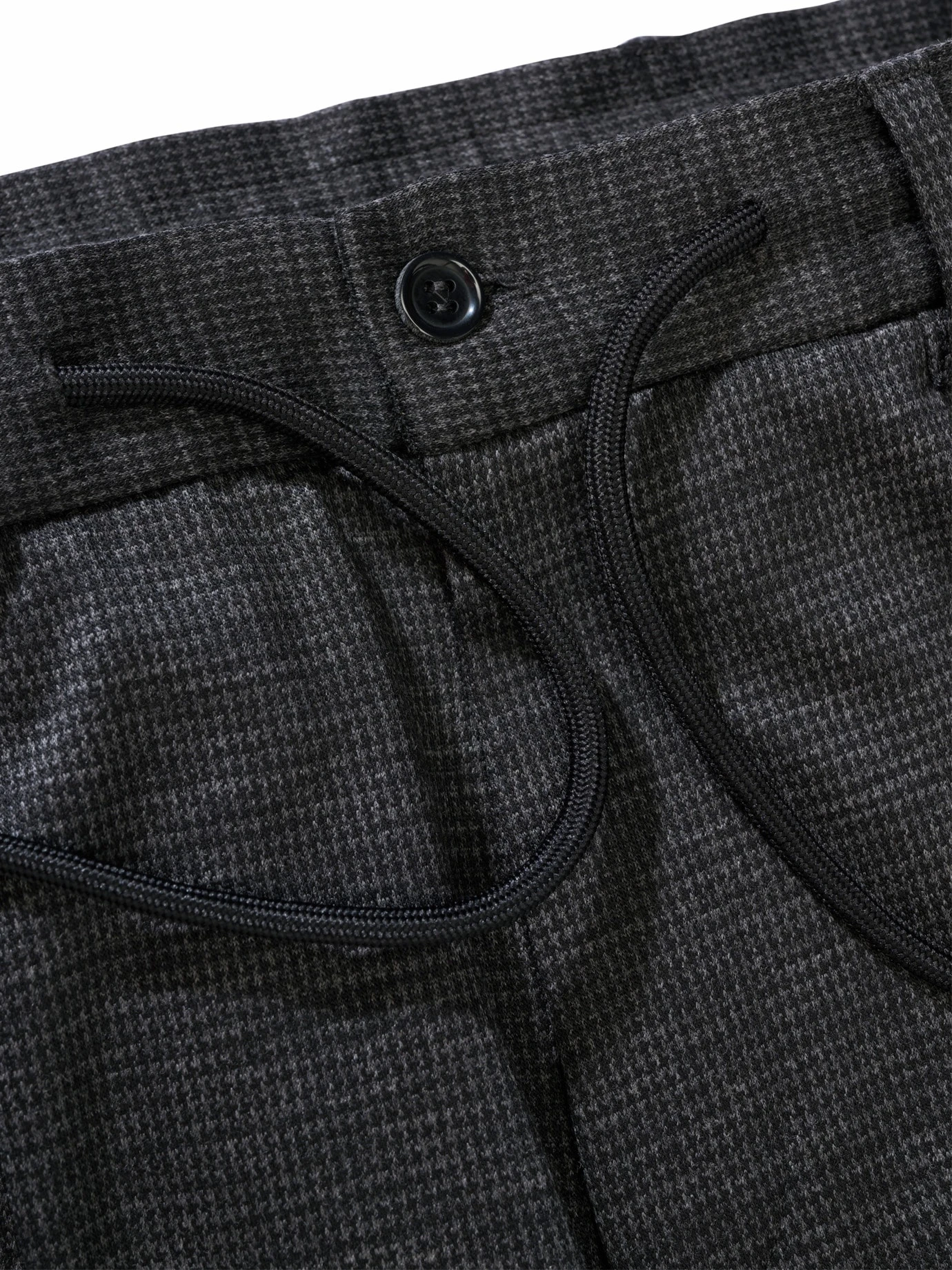 Konkurrenz fürs Chamäleon: die weiche Jerseyhose mit hohem, temperaturausgleichendem Wollanteil. Für eine Anzughose bietet sie dank ihrer flexiblen Wirk-Qualität einen ungewohnt hohen Tragekomfort, der Kordelzug leistet sein Übriges. Und weil sich ihre formellen und legeren Eigenschaften so perfekt die Waage halten, funktioniert sie im Job zum klassischen Hemd oder in der Freizeit zum lässigen Sweater. Praktisch: Geschäftsreisen oder Wochenend-Trips übersteht sie im Koffer nahezu knitterfrei. Zum kompletten Anzug wird sie mit passendem Sakko (Nr. 24-6742-3).