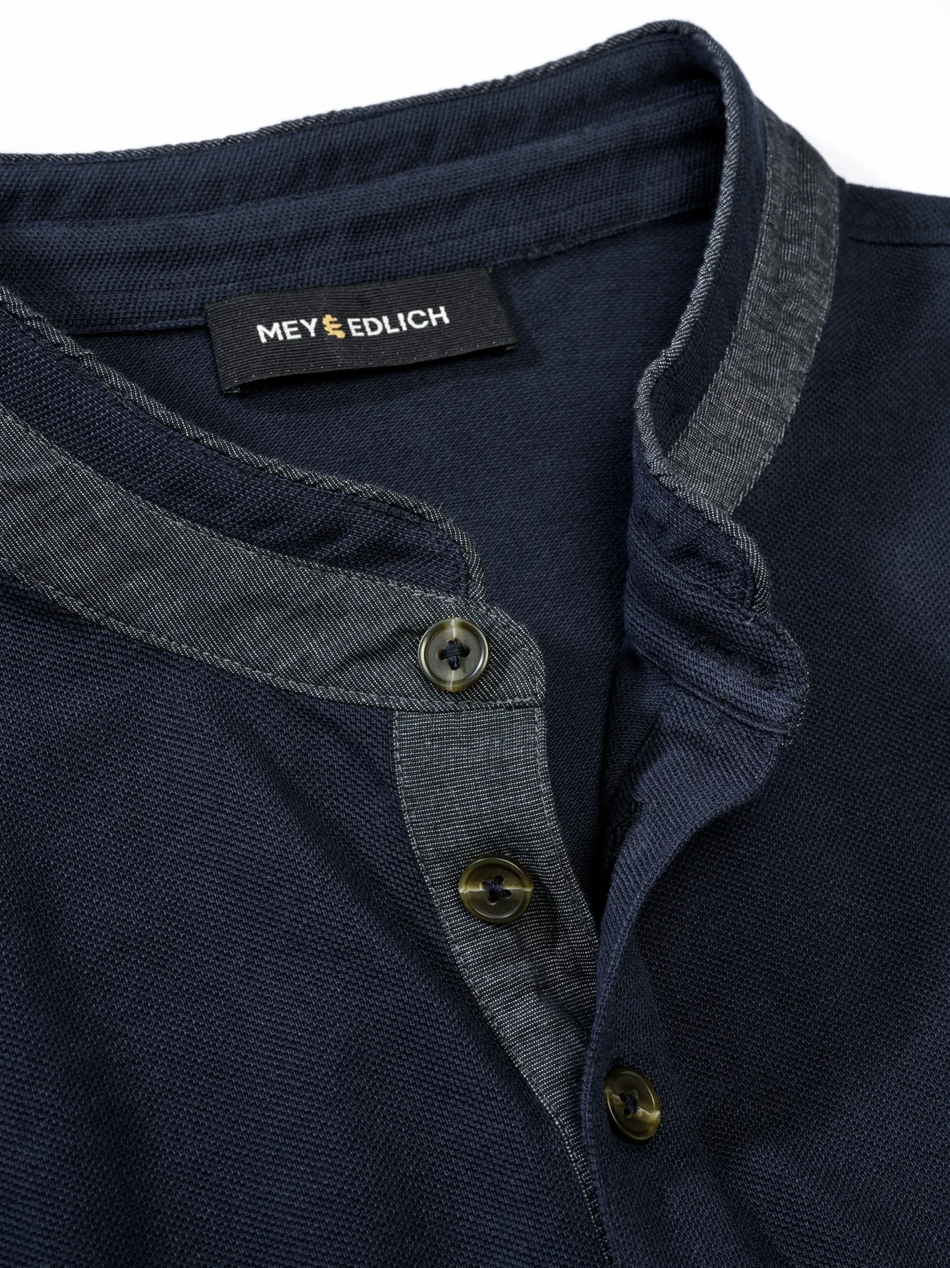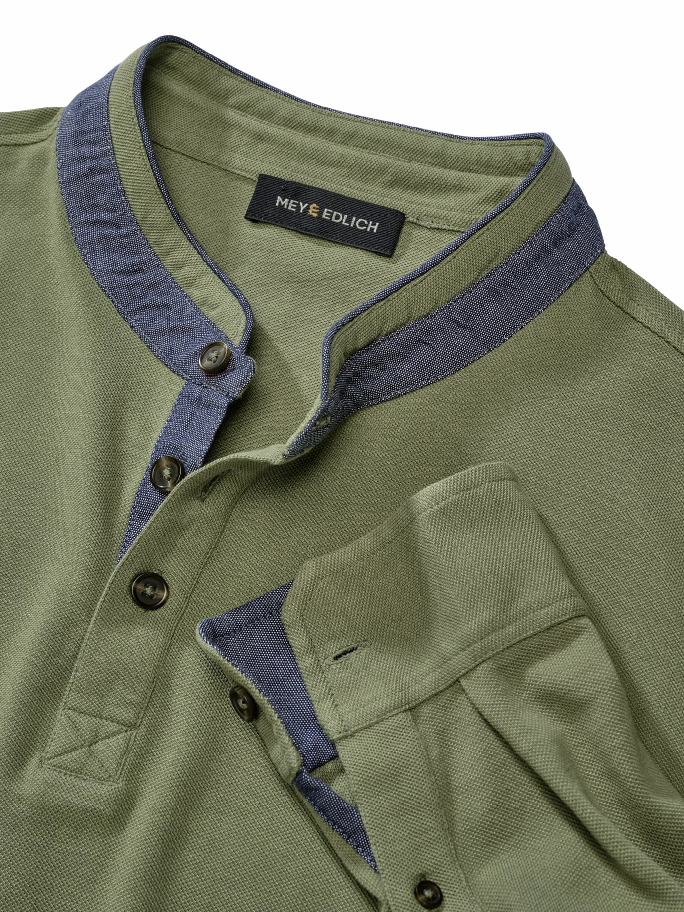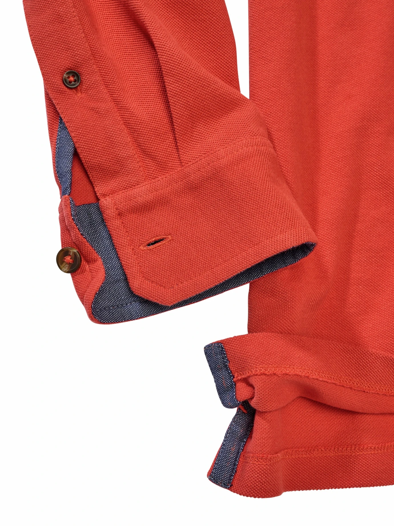 Aus dem Mutterland der Polos weiterentwickelt. Mitten in der Hektik Indiens fanden wir einen, mit dem wir das Polo neu denken konnten. Geblieben sind der feste Baumwoll-Piqué und die langen Ärmel, wie die Urväter das Polo bereits trugen. Neu sind die Details: feines Piping am Stehkragen, das an Denim erinnert, auch an den Innenseiten der Manschetten. In allen Kombinationen sportlich-cool.