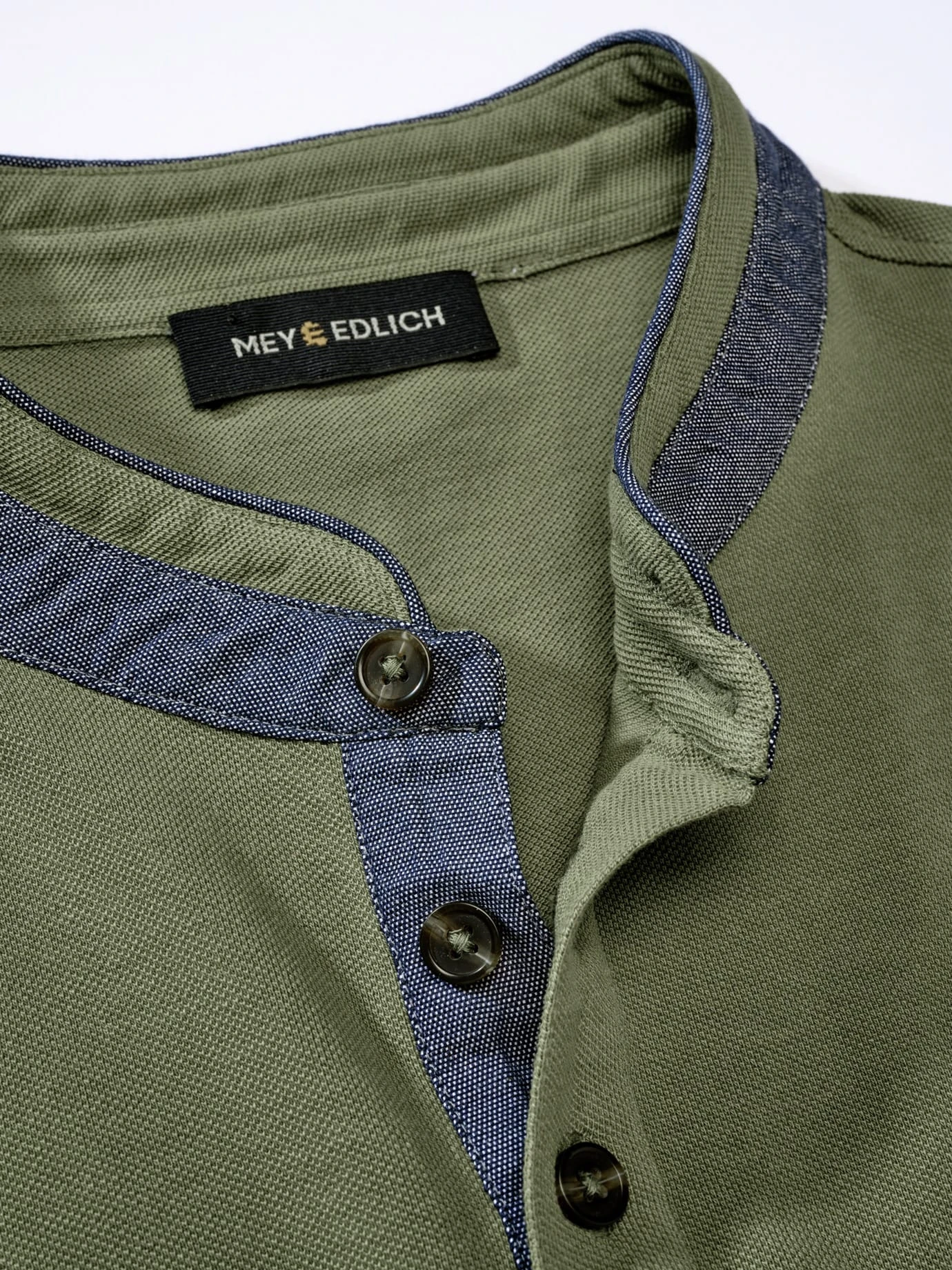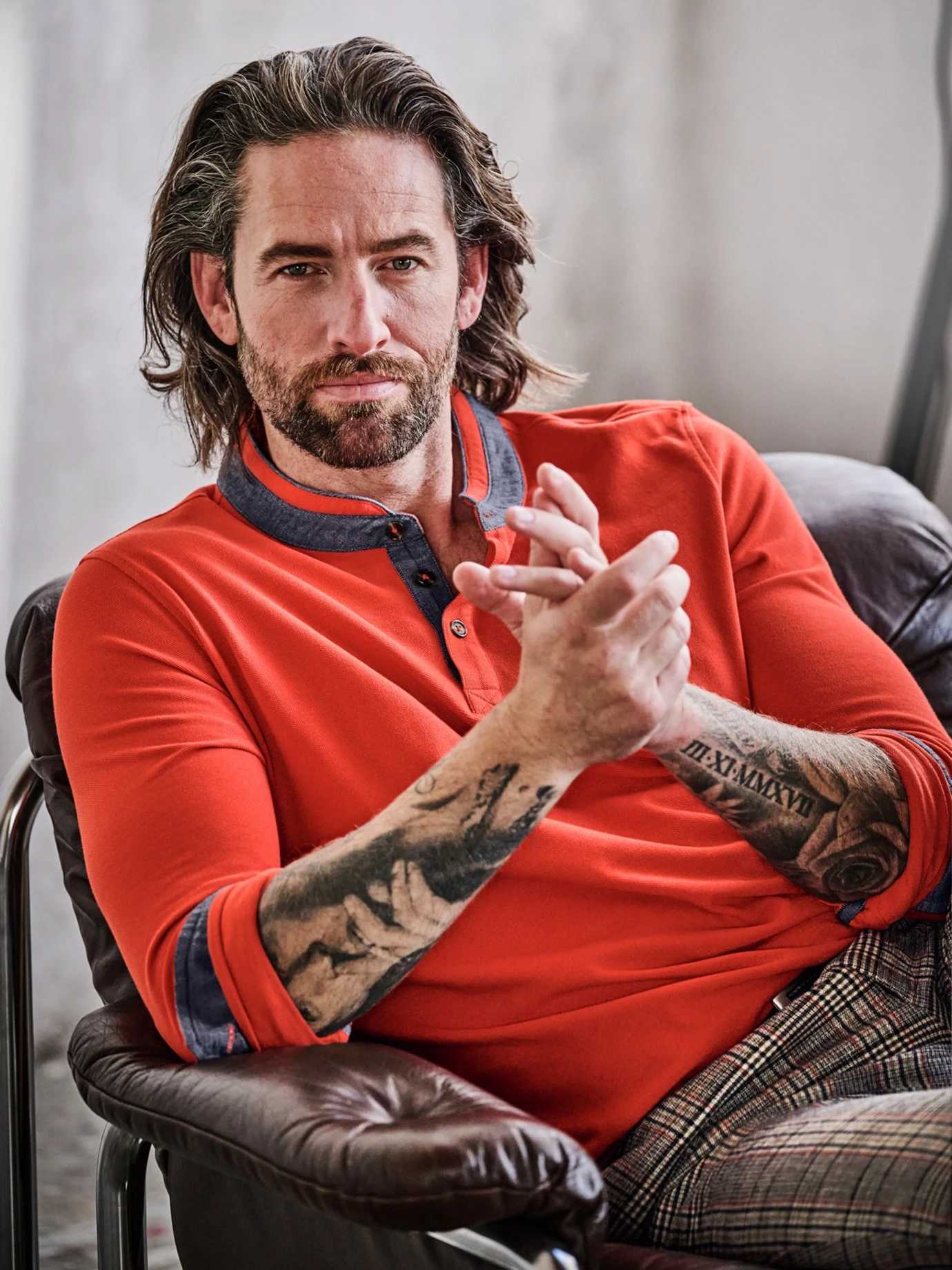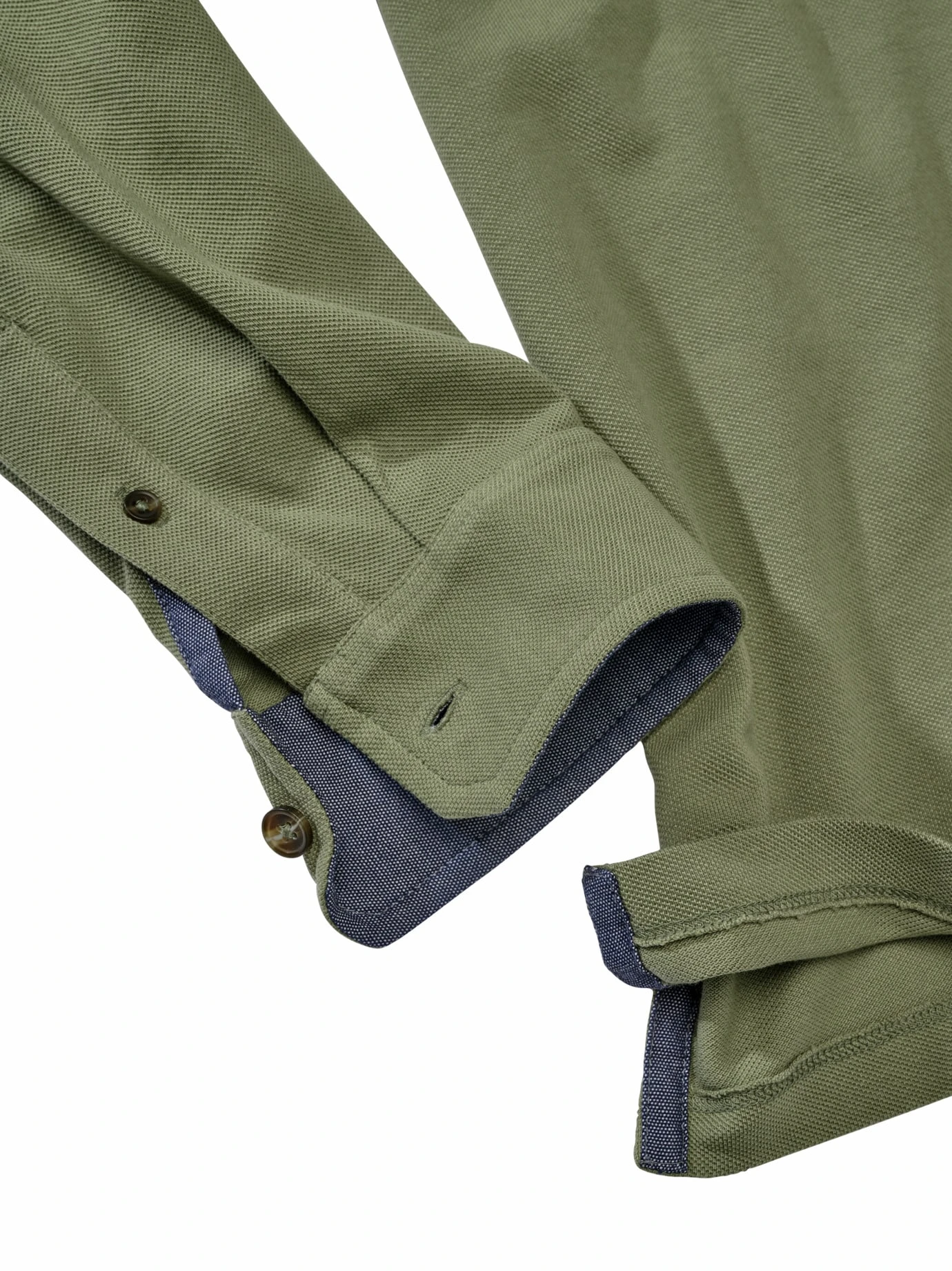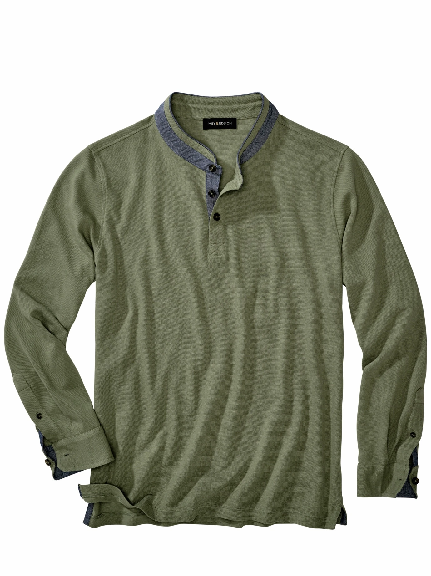 Aus dem Mutterland der Polos weiterentwickelt. Mitten in der Hektik Indiens fanden wir einen, mit dem wir das Polo neu denken konnten. Geblieben sind der feste Baumwoll-Piqué und die langen Ärmel, wie die Urväter das Polo bereits trugen. Neu sind die Details: feines Piping am Stehkragen, das an Denim erinnert, auch an den Innenseiten der Manschetten. In allen Kombinationen sportlich-cool.