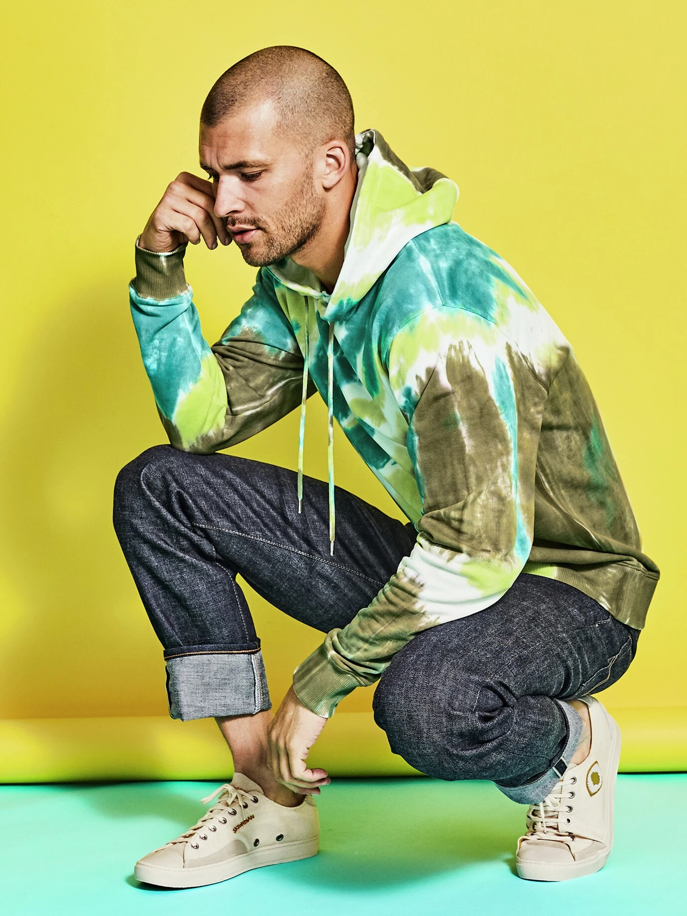 Über diese Sneaker wacht das Auge von Satorisan. Zumindest im übertragenen Sinne – das Herzauge symbolisiert das japanische Koto, das die Emotion über alles stellt. Vernäht auf strapazierfähige Baumwolle, die mit natürlichen Farbstoffen eingefärbt und anschließend in kleinen handgefertigten Trommeln gewaschen wird, bis der Vintage-Effekt authentisch ist. Sorgt obendrein für ein angenehmes Fußklima.