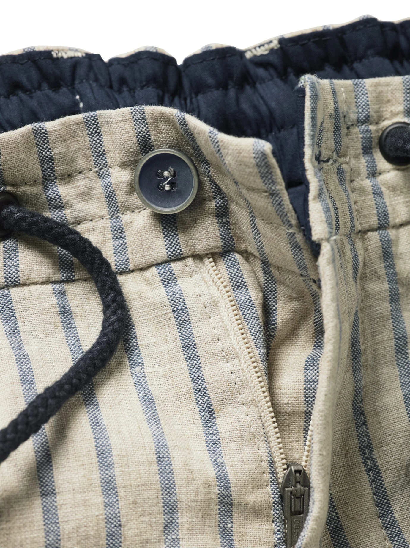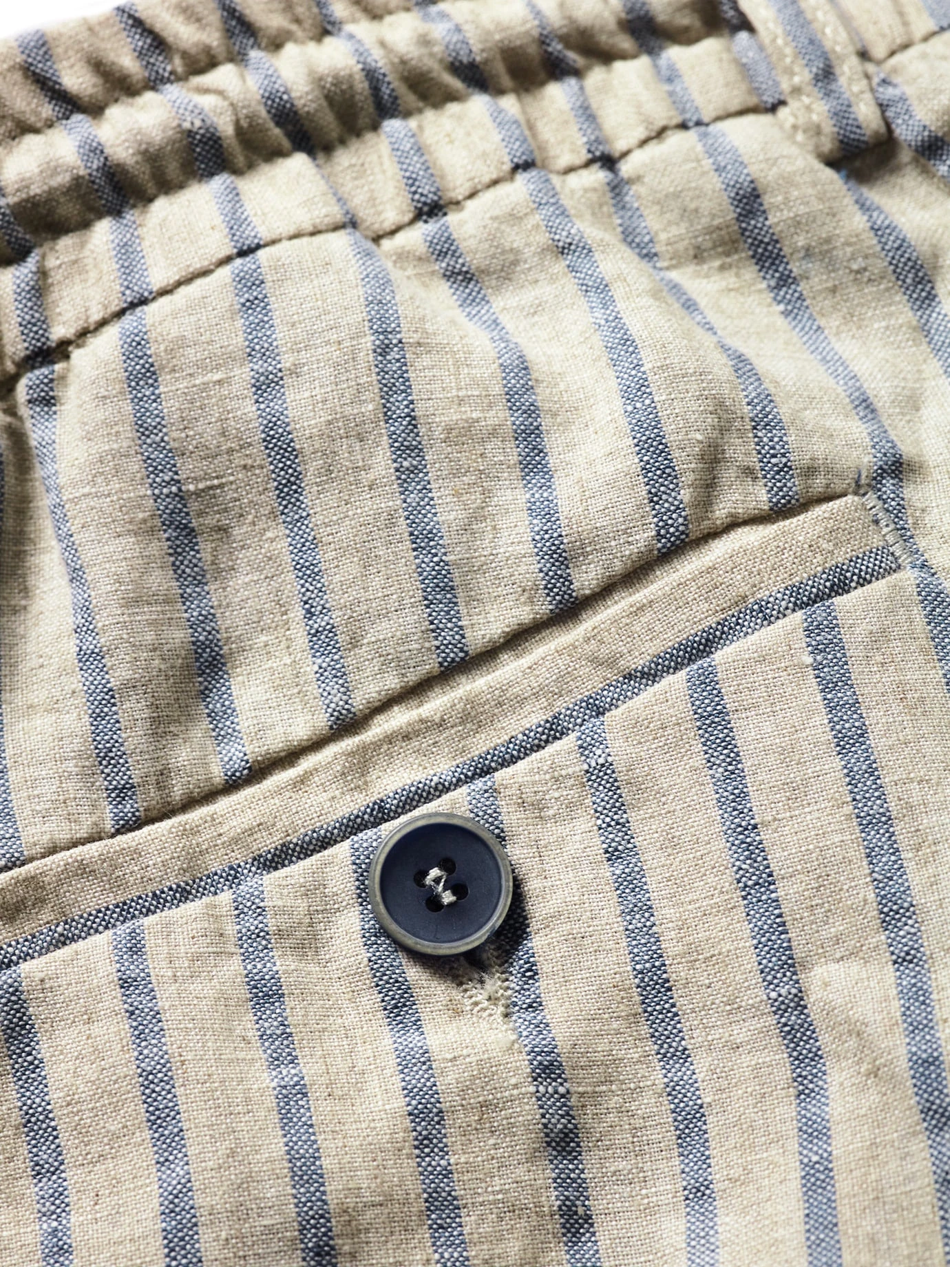 Die Leichte muss knittern. Leinenliebhaber wissen: je satter die Knitter, umso hochwertiger das Leinen. Der Flachs dieser Shorts wächst in der Türkei, durch die geringe Ausspannung beim Trocknen behalten die Fasern ihre kräuselnde Struktur – der Stoff knittert sanft und nicht so hart. Die Shorts ist locker geschnitten, mit entspanntem Tunnelzug, der sie auch ohne Gürtel an Ort und Stelle belässt. Gern gekrempelt, schön direkt zum Leinenhemd und Sandalen, wirkt aber genauso gut zum Printpolo.