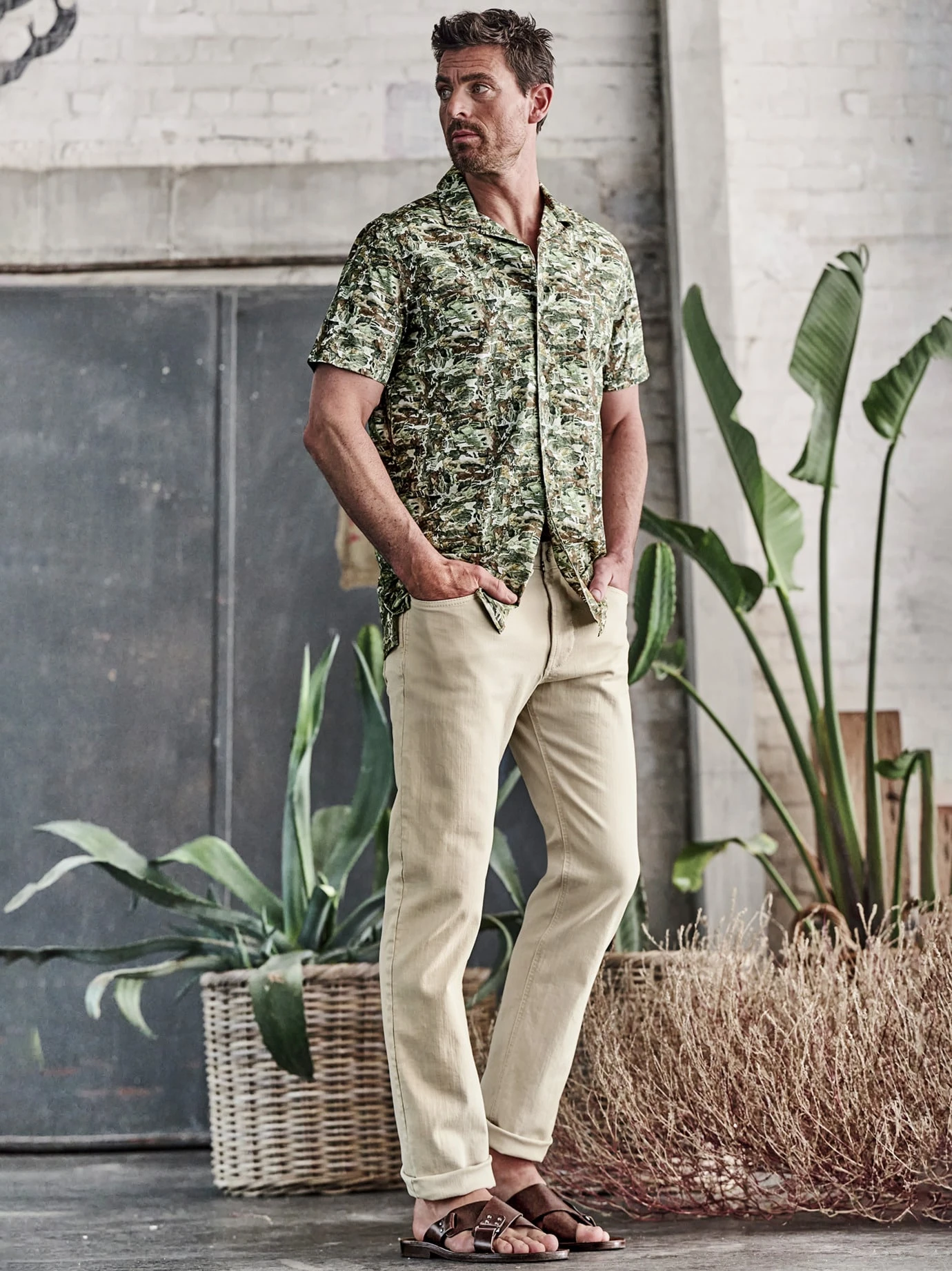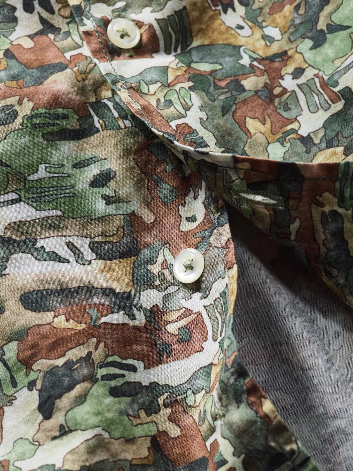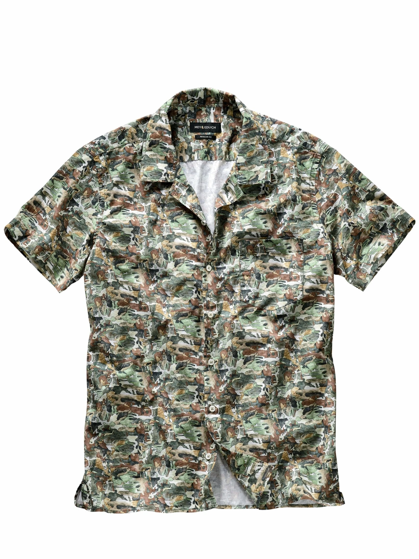Einmal komplett entfremdet. Das Besondere an diesem Hemd ist das spezielle Dessin. Das bekannte Flecktarn-Muster wird durch Aquarell-Technik verfremdet und dem Hemd so mehr Frieden eingehaucht. Im Wald verstecken klappt aber weiterhin, im Großstadtdschungel fällt man allerdings wohl eher auf – aber eindeutig modisch-positiv. Passt gut zu Shorts, sonst auch zur Five Pocket, aber immer über der Hose tragen.