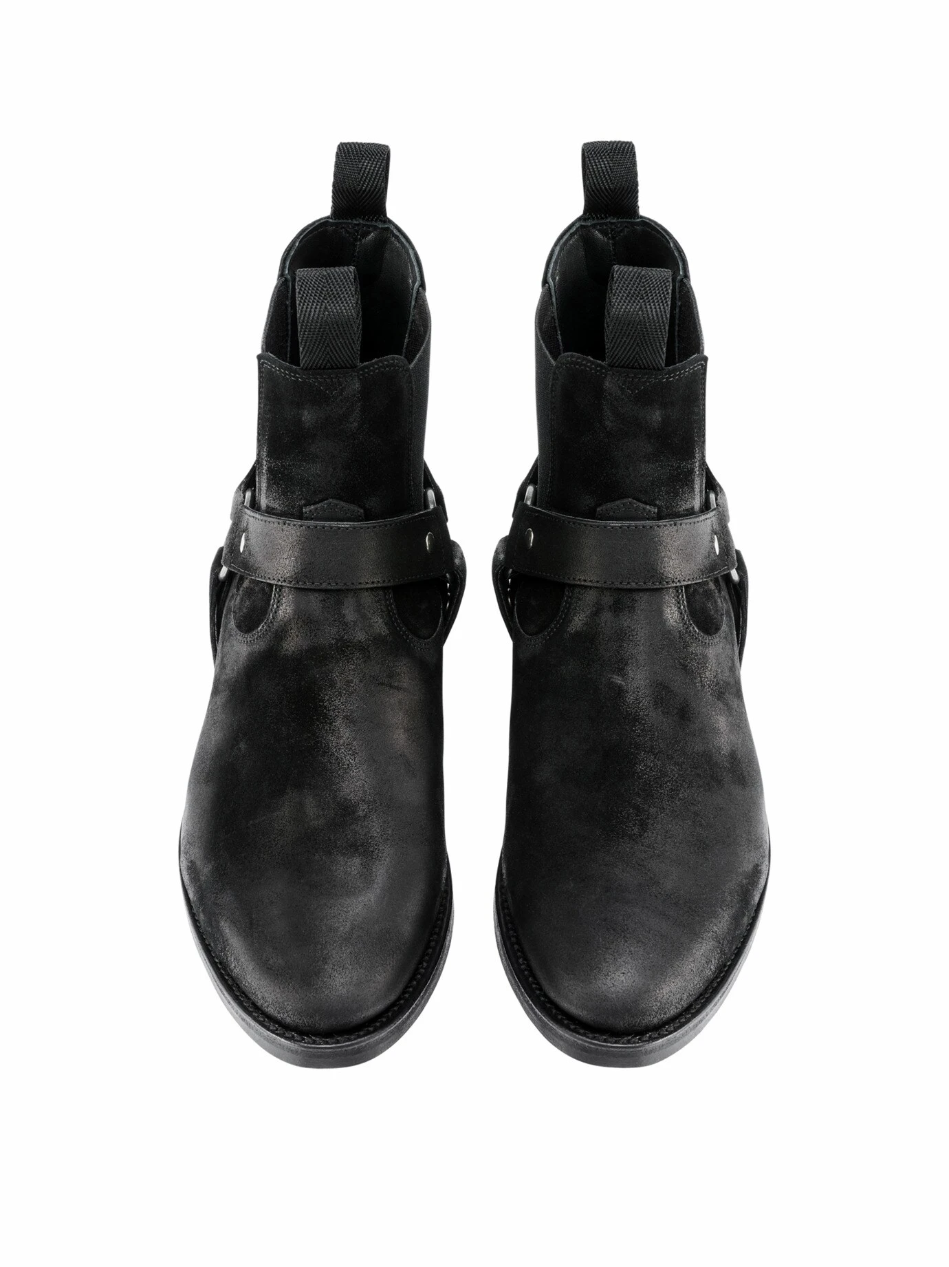 Verarbeitung: Stilecht mit dem dreiseitigen Lederriemen, der seinerzeit den Sitz am Steigbügel garantierte. Hinzugekommen ist das seitliche Gummi (ähnlich dem Chelsea Boot), damit das An- und Ausziehen nicht zu anstrengend wird.