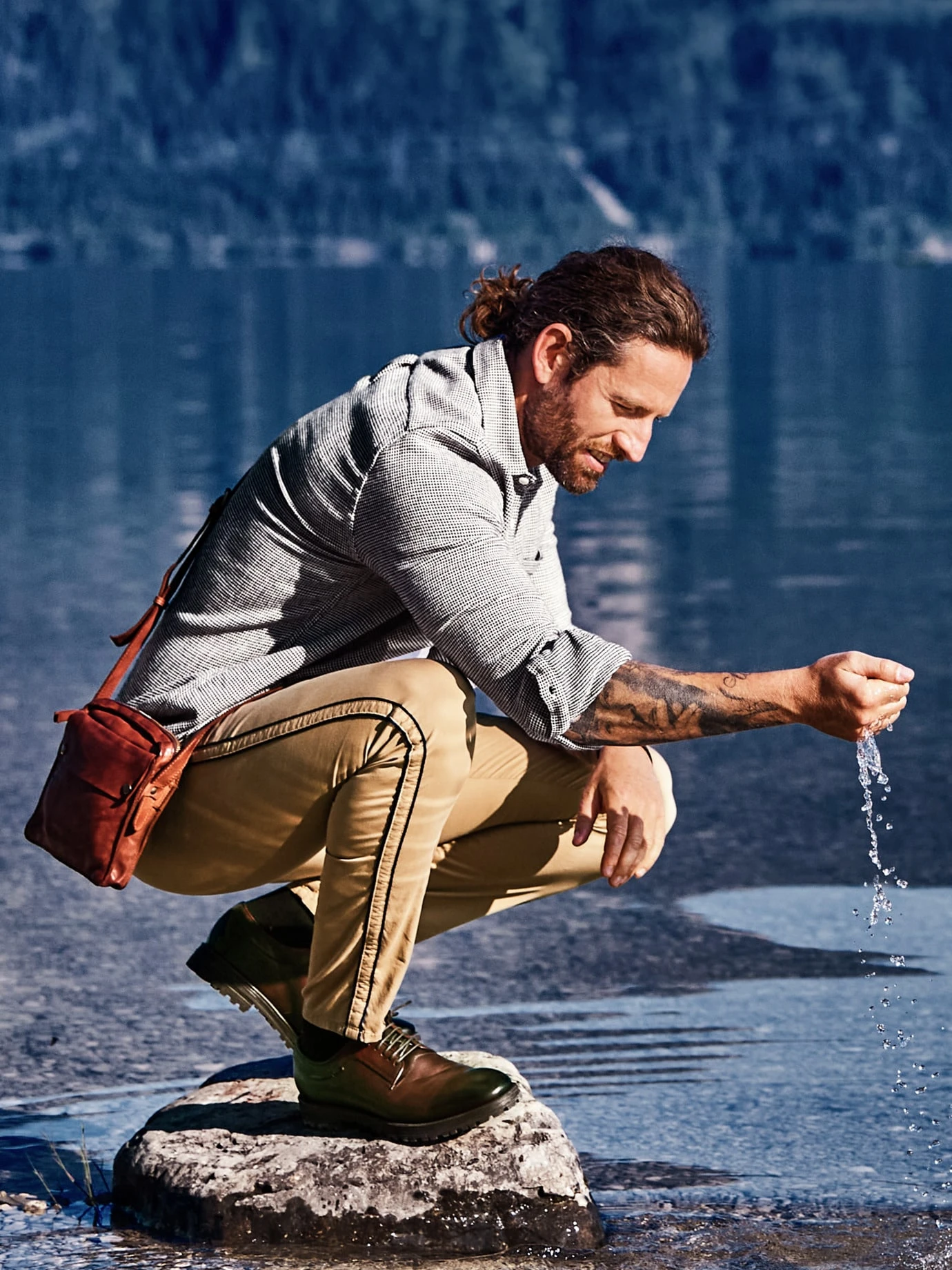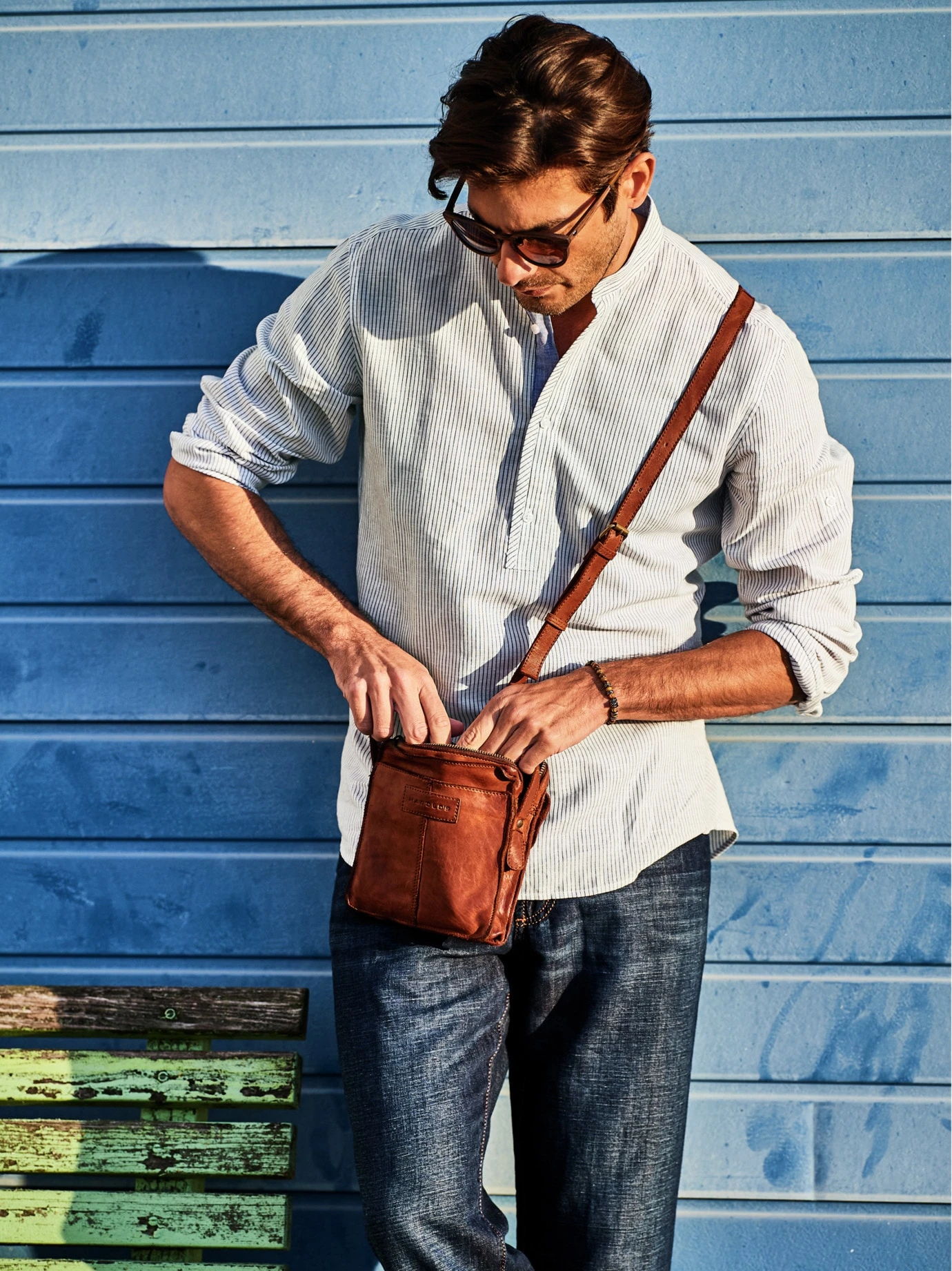 Für die kleinen Dinge von Bedeutung. Wenn Sie unterwegs sind und nur das Wichtigste benötigen, ist eine kleine Tasche oft eine Spur praktischer. Sie ist handlich, Sie bewahren die Übersicht und in der durchdachten Taschenorganisation (zwei Taschen außen, zippbares Hauptfach mit zusätzlicher Reißverschlussinnentasche) verstauen Sie alles, was Sie schnell zur Hand brauchen. Und was Identität, Mobilität und Liquidität ausmacht. Der individuell verstellbare Gurt liegt lässig über der Schulter. Schön weiches Rindleder, mit einer Patina, als hätte es schon viele Länder bereist.