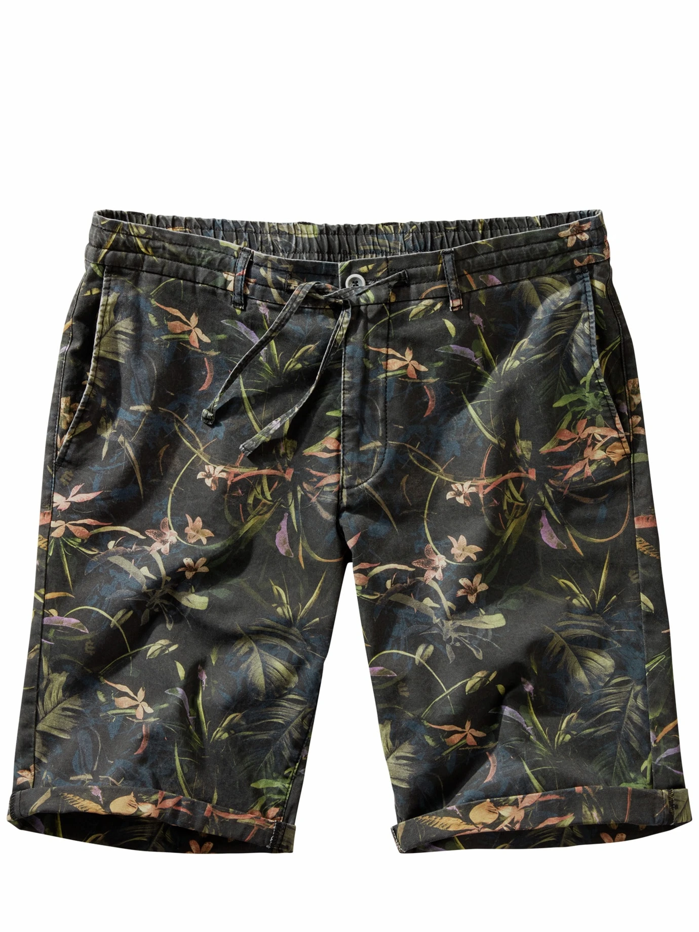 Mit der Souveränität einer guten Sommershorts und der Lässigkeit einer Badeshose. Gemacht aus stabiler Baumwolle und einem Schuss Elasthan für die Bequemlichkeit. Dazu der flexible Bund und ein fast schon fluoreszierender Druck – diese Shorts sind ein wahres, optisches Highlight. Sehr angezogen mit schwarzem oder weißem Leinenhemd.