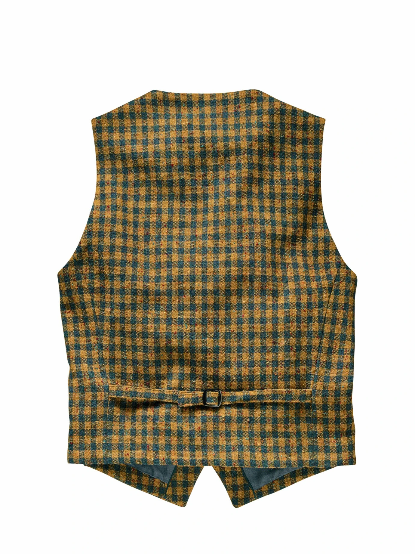 Scharfe Farbkombi. Über das satte Senfgelb legt sich ein blaues Karo, bunte Flugfäden toppen das Ganze. Sie sorgen zugleich dafür, dass die Weste leicht Farb-Anschluss an viele Hemden in Ihrem Schrank findet. Der Tweed vom italienischen Weber Leomaster ist überraschend weich, der materialgleiche Rücken macht das Sakko überflüssig. So haben Sie beim Experimentieren in der Küche mehr Spielraum. Geraten Sie dabei ins Schwitzen, liegt es jedenfalls nicht am Futter aus klimatisierender Zellulose.