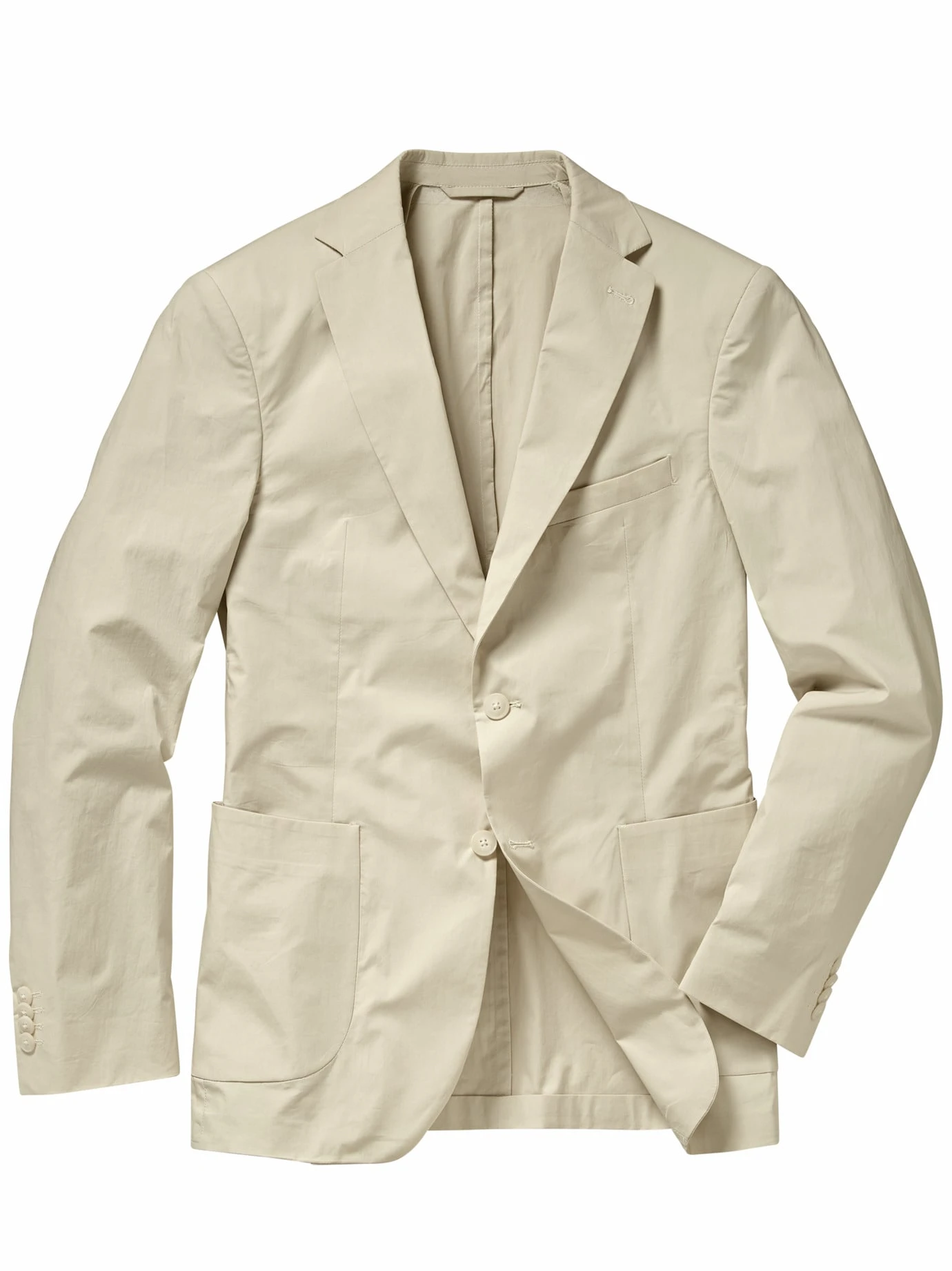 Ein Anzugsakko, so leicht wie Wüstenwind. Pro laufenden Meter wiegt der Stoff nur 125 Gramm, er ist damit ähnlich schwer wie ein Hemd und doppelt so leicht, wie Sie es von Ihren herkömmlichen Anzügen kennen. Der italienische Weber Profilo dreht die Garne dafür ganz fein auf, zusätzlich gibt das Baumwollanzugsakko unbemerkt nach. Am besten zu gleichnamiger Hose (Nr. 24-6876-5), wenn’s richtig heiß werden soll, direkt zur Shorts (Nr. 24-6878-9) kombinieren.